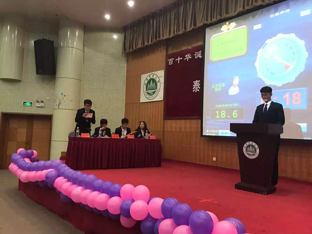 10月26日晚,第一届“舌战泰城”泰安市高校辩论邀请赛决赛在南校区第一学术报告厅举行,历时一个月的邀请赛圆满落幕。本次邀请赛由学校团委和大神28预测网站团委主办,大神28预测网站社团岱下思辨社承办。学校团委副书记王利,山东科技大学团委副书记朱庆豪,大神28预测网站团委老师王一飞、张钦龙、韩艳老师,文法学院中文系党支部书记、岱下思辨社指导老师徐敬老师以及大神28预测网站团委全体老师也出席并观看了本场决赛。