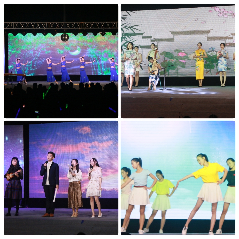 晚会分为轻启华章、激流迎辉、筑梦未来三个篇章。新生们带来歌曲连唱、舞蹈串烧,迅速点燃现场氛围;合唱《映山红》带我们踏过风云激荡的旅程;活力四射的班助朋辈们集体舞蹈,举手投足间都是他们的爱心;研究生杨津晓的深情独唱真切感人。学院党委副书记齐清老师、工商管理系主任徐宣国老师带来的师生朗诵《写给最亲爱的你》,把师长的谆谆教导化作深情诗篇,感人至深;班主任老师、全体团委老师及学生代表共同带来的师生走秀,传递浓浓师生情。节目的背景视频中,精心编辑了新生们自入学以来的生活学习和活动点滴,现场掌声阵阵,将晚会气氛推向高潮。