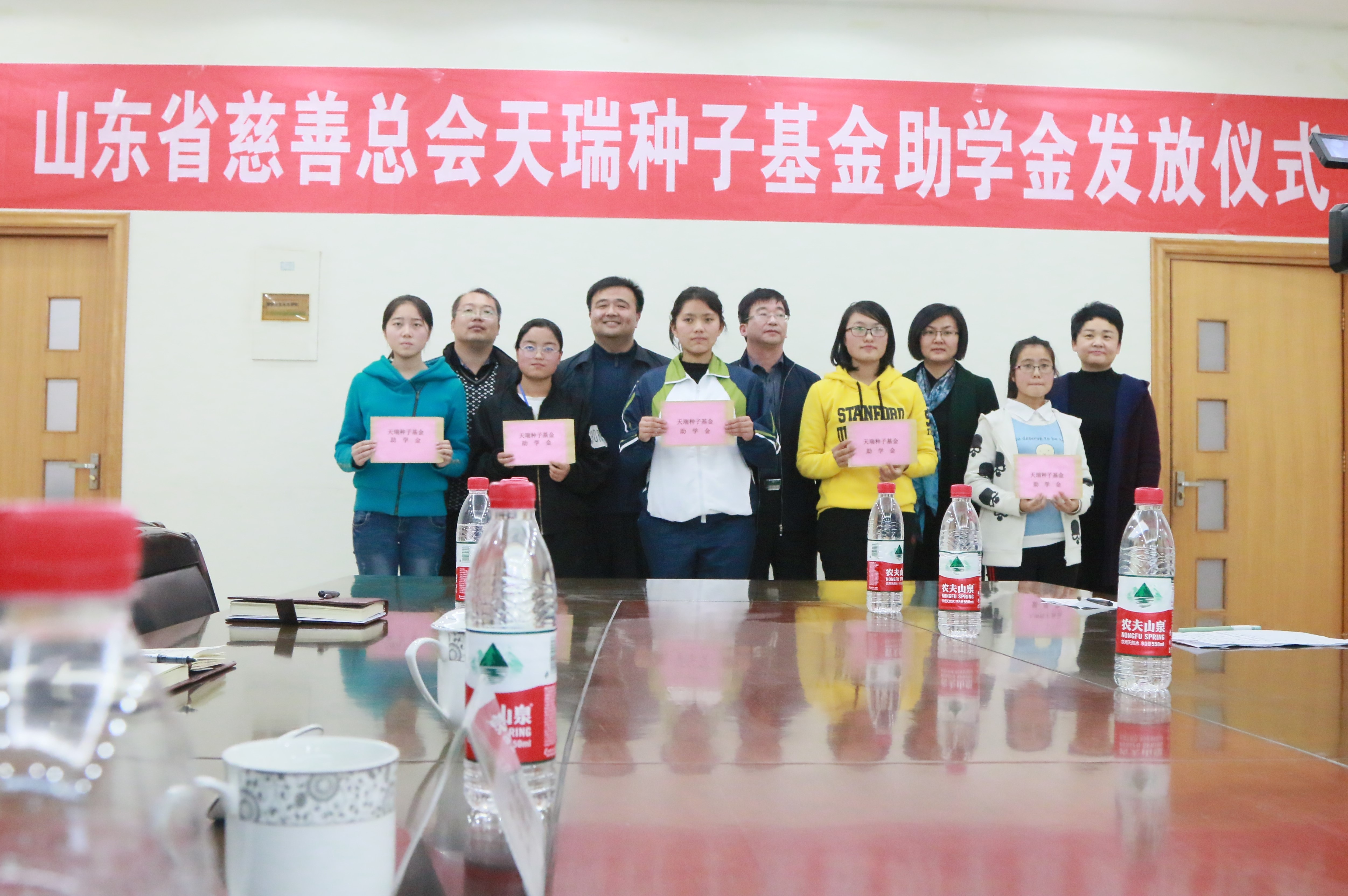 11月3日,山东省慈善总会天瑞种子基金助学金发放仪式在南校区举行。省慈善总会副会长兼秘书长张彦龙、济南天瑞种子有限公司总经理王海鹏、大神28预测网站院长陈盛伟、学工处副处长宋伟以及经管学生工作人员参加发放仪式,并与受助学生亲切座谈。