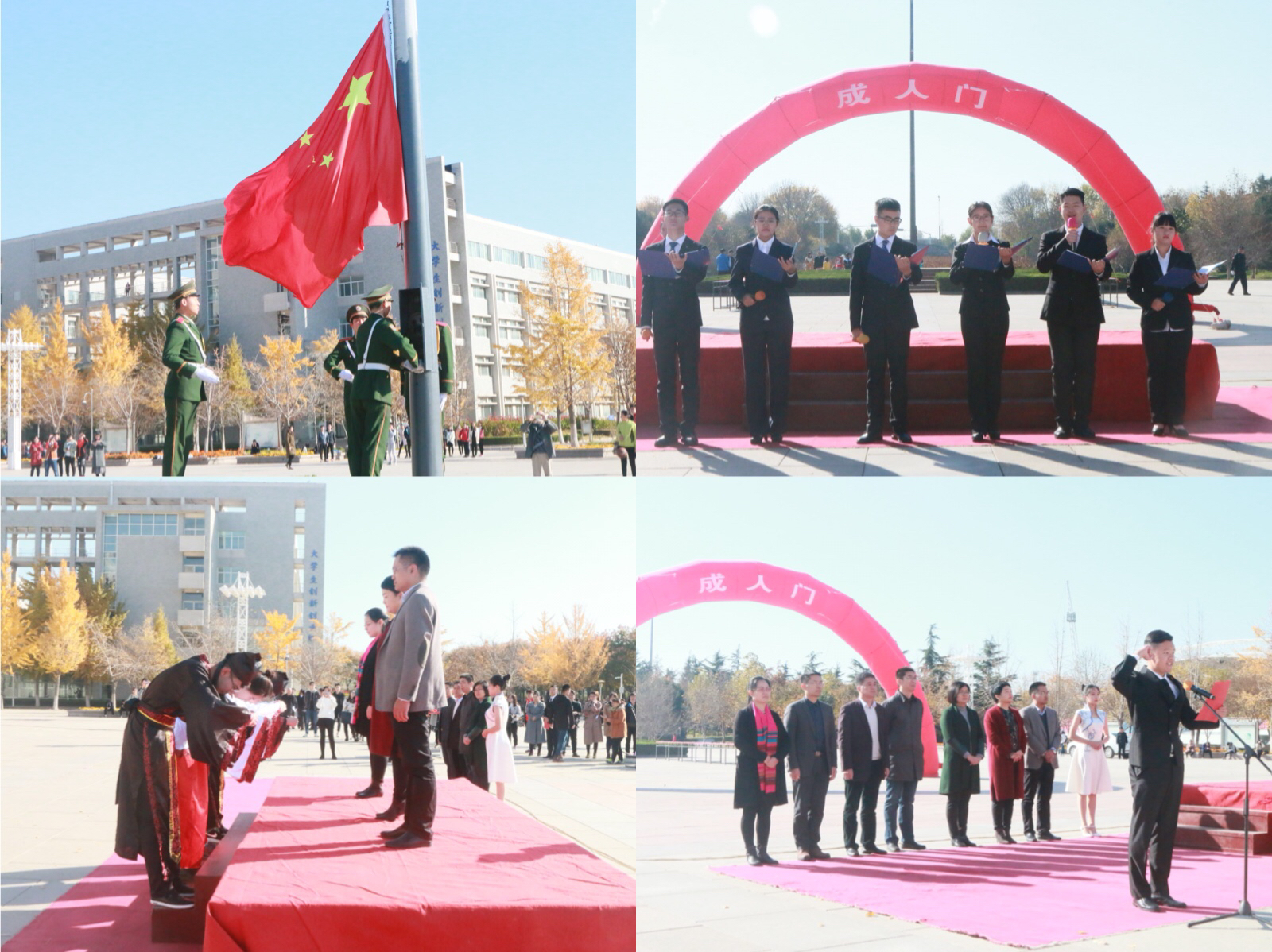 11月11日,大神28预测网站“青春育希望,责任铸未来”第四届成人礼活动在南校区综合楼广场举行。学工处处长王群、副处长宋伟,大神28预测网站党委书记魏立政、党委副书记尹鹏、党委副书记齐清、国贸系主任张秀芳、全体团委老师以及全体2017级新生参加本次仪式。