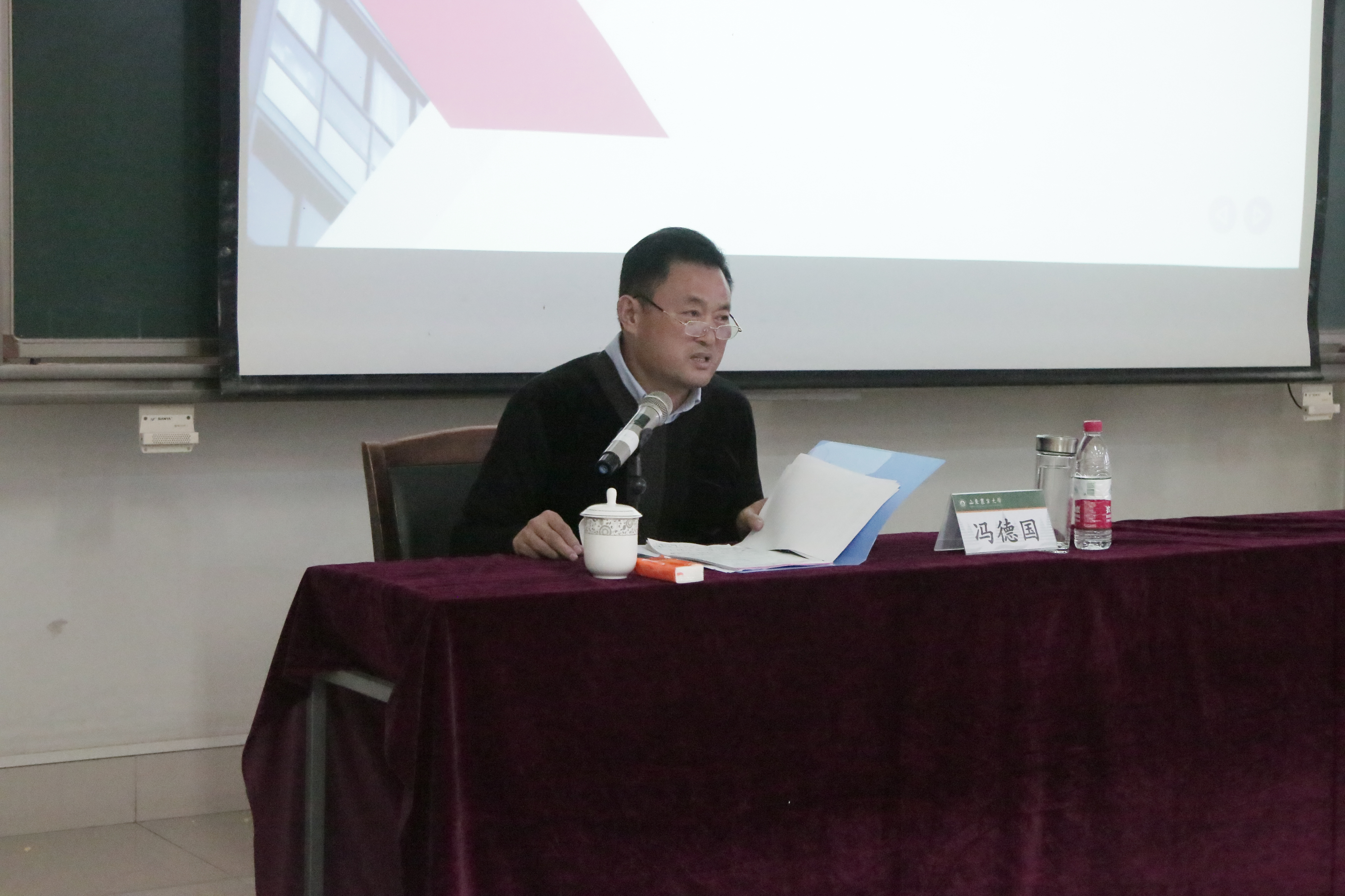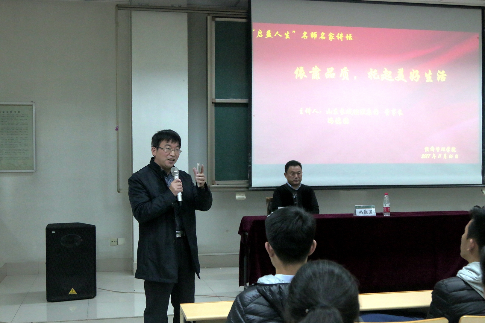 11月16日,由学工处主办、大神28预测网站承办的“启益人生”名师名家讲坛在南校区综合楼N401教室举办,山东长城控股集团董事长冯德国受邀做报告,学院院长陈盛伟老师,学院党委副书记尹鹏、齐清老师和全体团委老师及学生代表参加此次讲坛。
