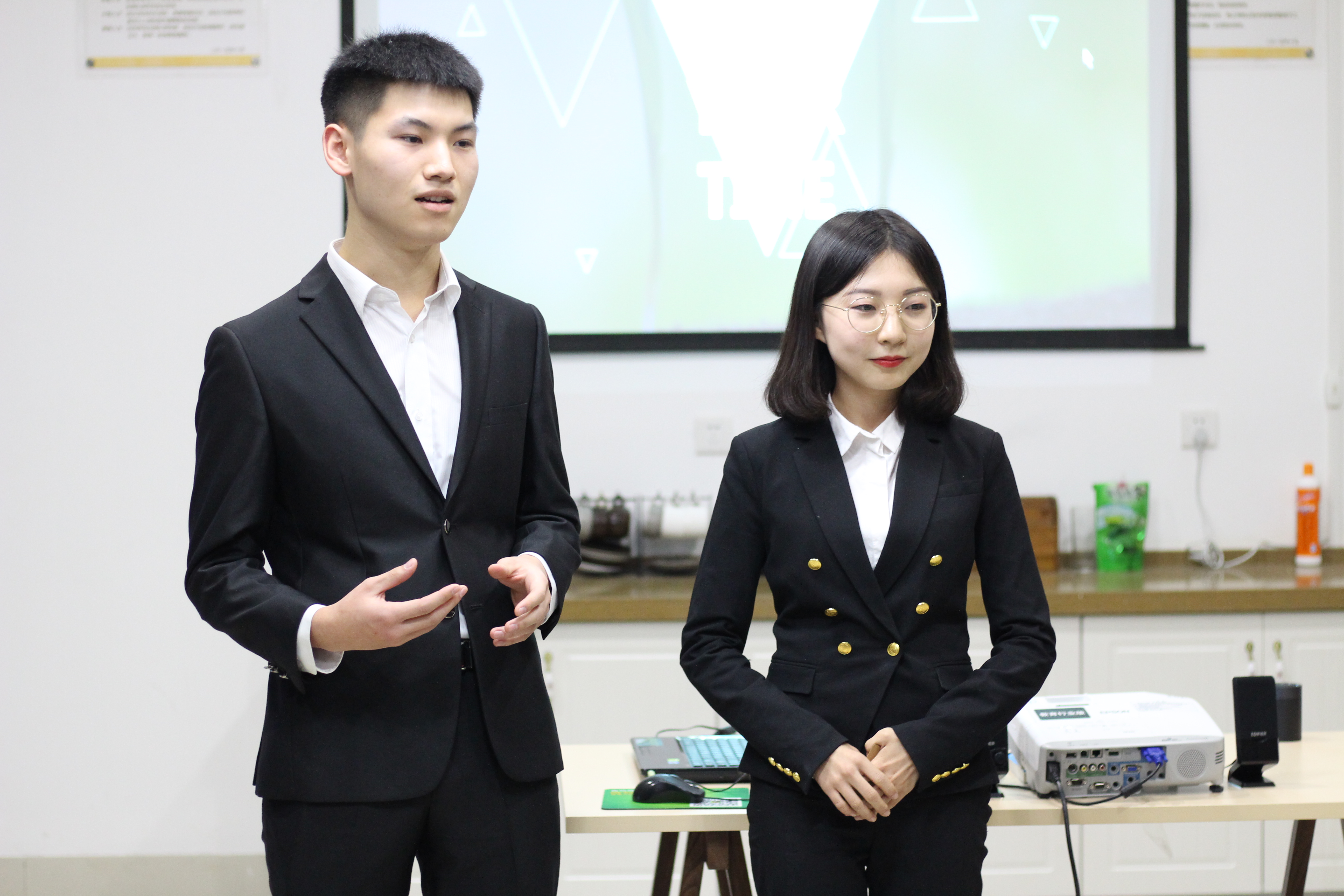 本次比赛采用“4+3”模式,即四分钟PPT介绍,三分钟评委问询。在比赛中,各队伍围绕自己的创业项目依次从创新理念、经营模式及盈利渠道等方面进行PPT展示,在现场答辩环节,面对评委老师的犀利提问,各团队或用实际运营的数据或用贴近实际的调查来应对评委对市场潜力的质疑。其中,泰山美景听听APP创业计划类团队以宣传泰山文化、为游客提供更便捷的旅游体验为目的,凭借其贴近生活和最具可行性的优势得到了评委老师的高度评价,获得本次选拔赛一等奖,同进入校内复赛的还有纷享校园电子商务平台等五支队伍。