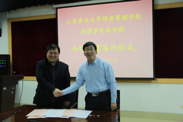 座谈结束后,举行了我院与菏泽学院商学院合作共建签约仪式,陈盛伟院长和田建军院长分别代表双方签订了合作共建协议。
