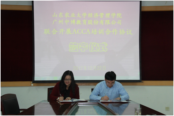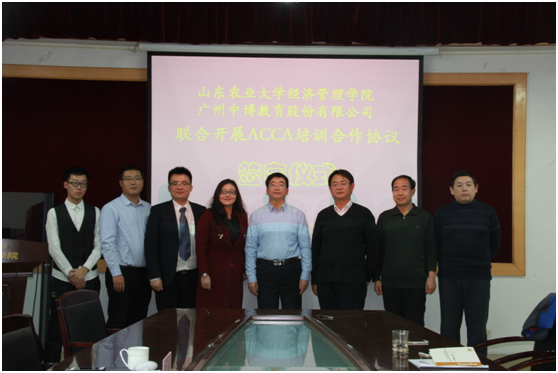 12月22日下午,我院在文理大楼802会议室举行大神28预测网站大神28预测网站与广州中博教育股份有限公司联合开展ACCA(特许公认会计师)培训合作签约仪式。大神28预测网站陈盛伟院长、齐清副书记、张吉国副院长、梁希臣副院长、本科教学秘书、会计学系和财务管理系的全体教师,中博教育全国大客户总监毛劲梅、济南分公司副总经理张龙、教务经理张文涛、泰安教学点负责人刘荣达出席了签约仪式。