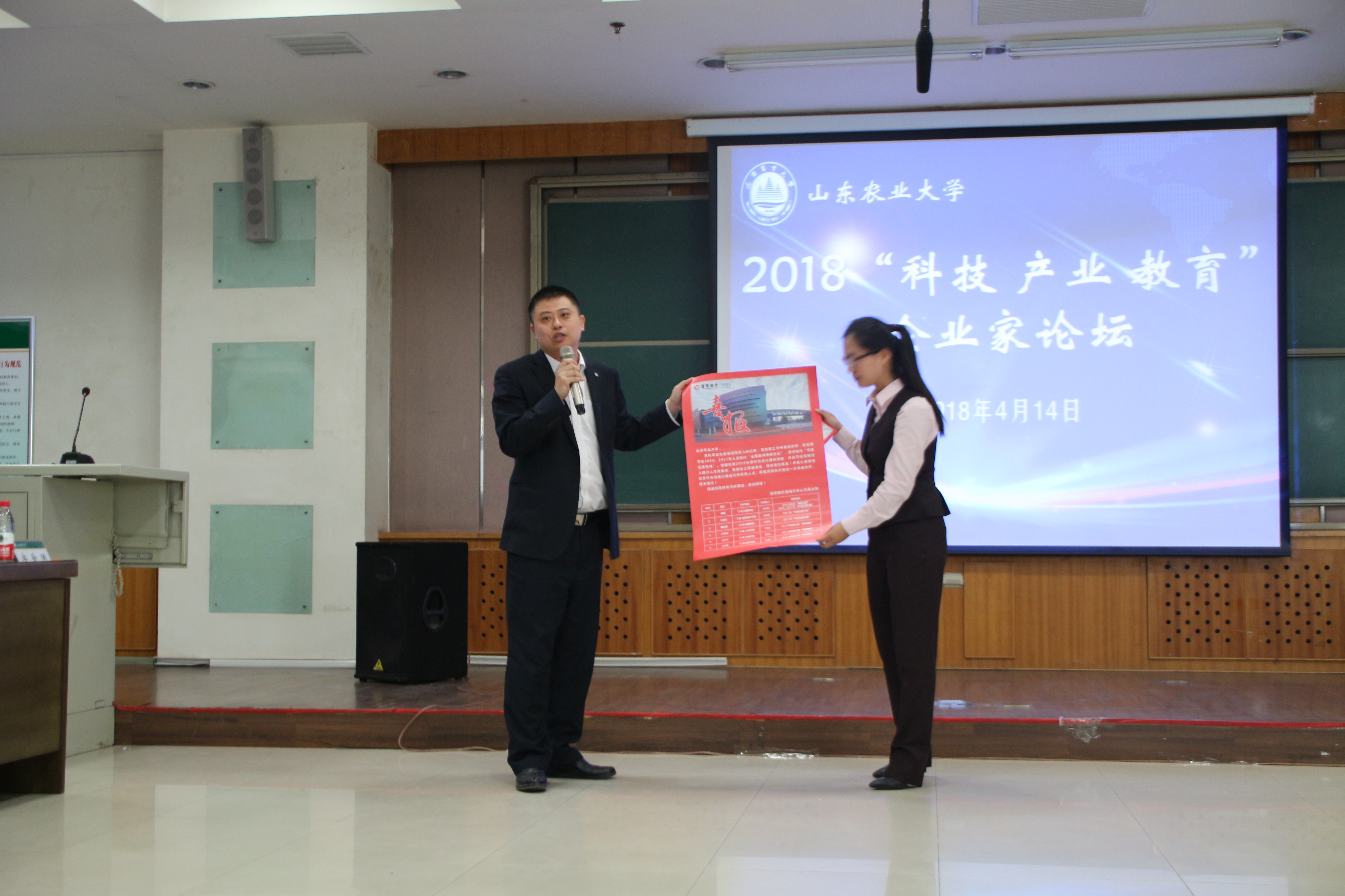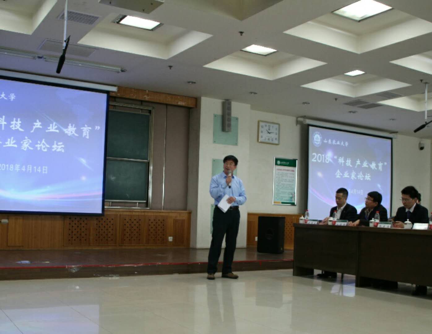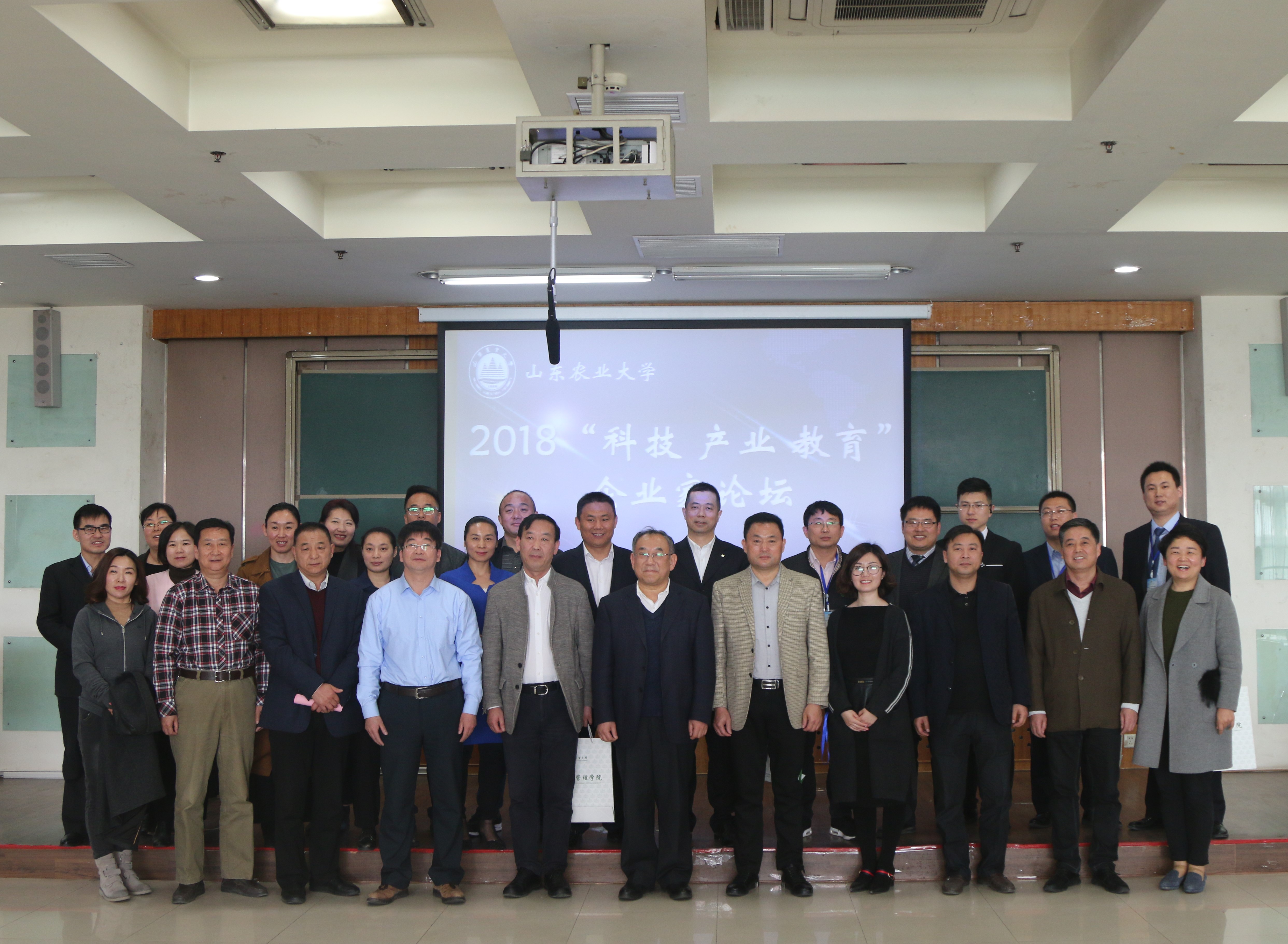 论坛现场气氛热烈,与会企业家踊跃发言。长城控股集团董事长冯德国分析了当今风起云涌的企业外部环境,通过生动案例讲述了创新精神对企业生存发展的重要性。五洲丰农业科技有限公司高级HR李幸祥,提出要培养学生从理想中找到现实的落脚点,要保持持续学习的能力。山东源生活网络科技有限公司总经理姜振华认为,教育与产业应当在科技的推动下深入融合,发挥校企联合的优势,打通校企互通的通道,做到校企共赢。泰康人寿人力资源部部长许国松邀请学院和企业互派人员学习授课,实现校企互通。中信证券、鲁南制药、光明乳业等企业代表也分别从不同的角度,阐述了科技影响教育,教育带动未来的理念。招商银行代表、我校校友张鑫介绍了山农大毕业生在招商银行发展的情况,表示山农学生“能低头看路,也能抬头看天”,实干与创新紧密结合的优秀品质得到了企业的高度认可。