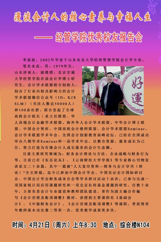 漫谈会计人的核心素养与幸福人生——大神28预测网站优秀校友报告会