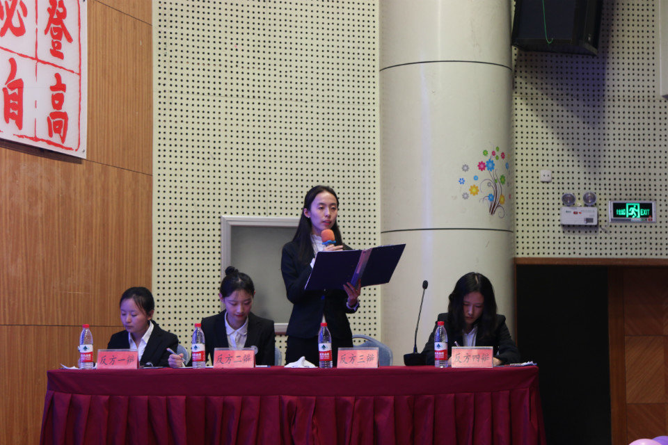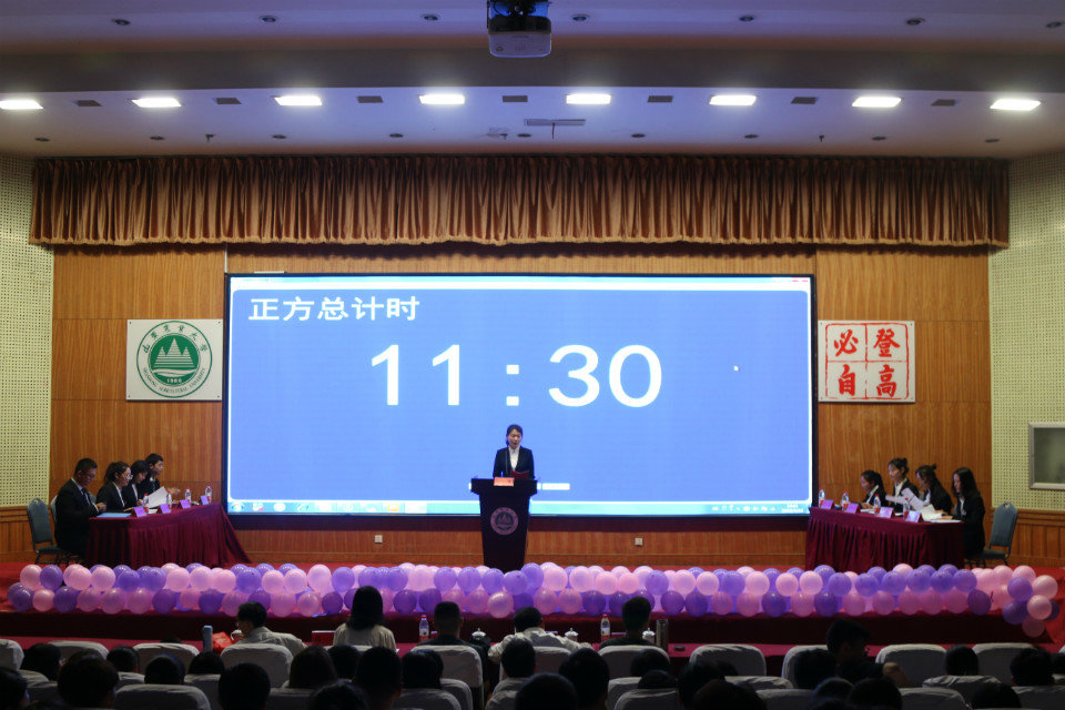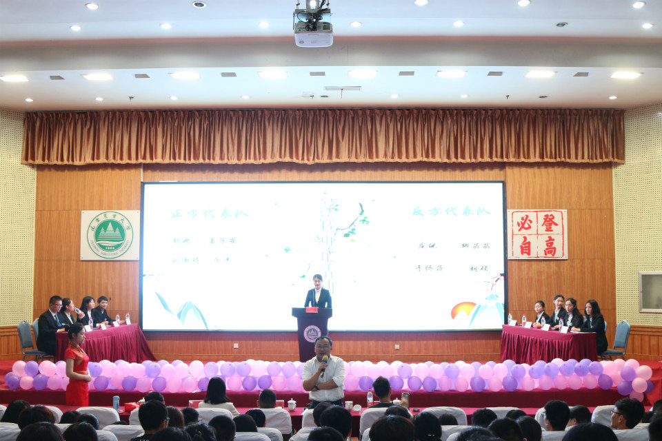 决赛在“团结就是力量队”和“知行队”之间展开,以“留学回国是个人问题还是社会问题”为辩题进行了激烈辩驳。正方从留学回国的个人需求随时代发展更突出以及个人发展的决定作用着手立论,反方则从社会影响社会关注等方面深入阐述本方观点。场上双方你来我往,唇枪舌战,引得场下掌声连连。赛后,冯哲老师对本场比赛进行点评,他鼓励同学们要相信辩论带给大家思维与逻辑的力量,打辩论要重视收集相关资料,做到“有理有据”。