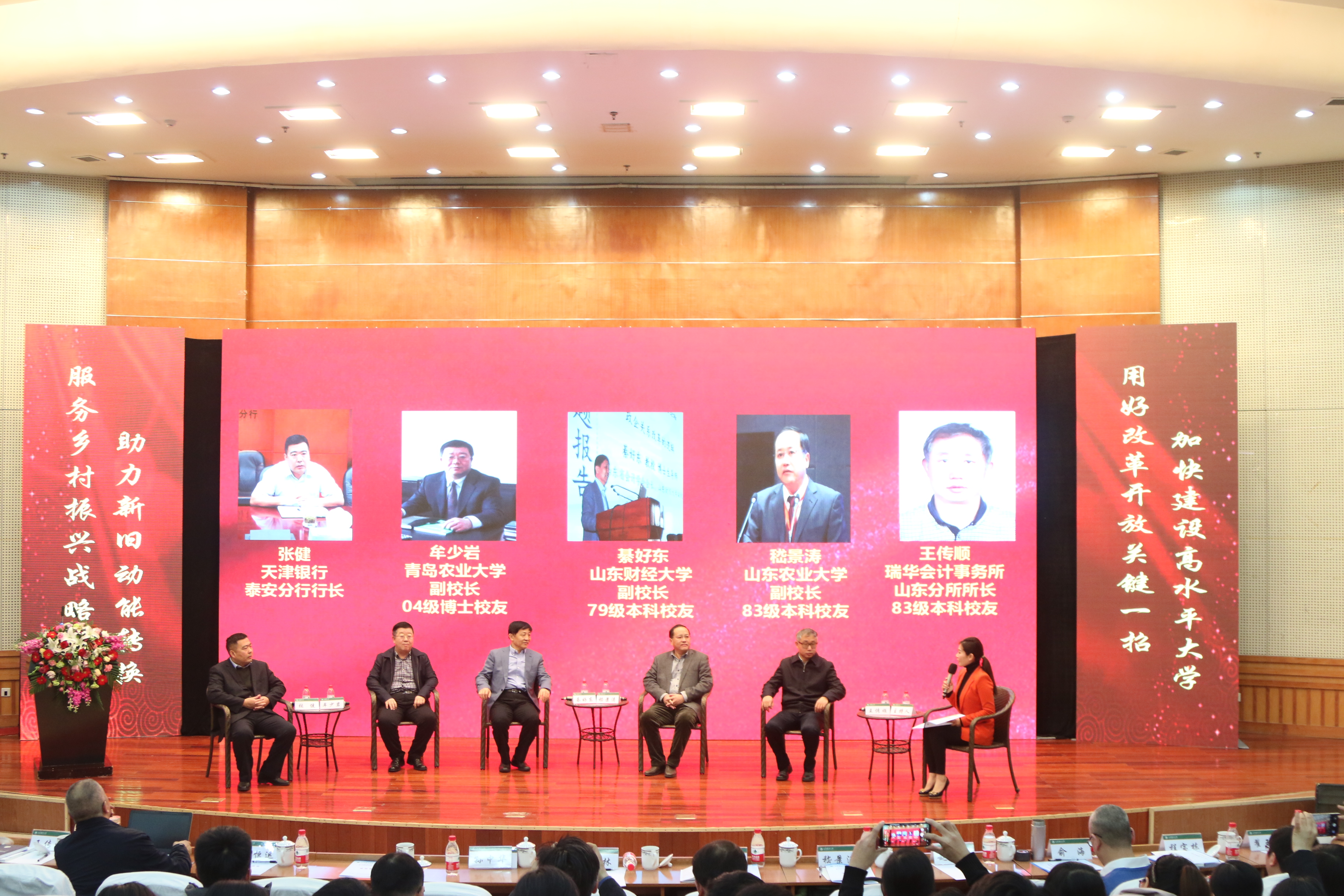 在访谈环节,山东农大副校长嵇景涛、青岛农业大学副校长牟少岩、山东财经大学副校长綦好东、天津银行泰安市分行行长张健、瑞华会计师事务所山东分所所长王传顺,就人工智能、信息化与人文社科发展的关系畅谈观点与看法。