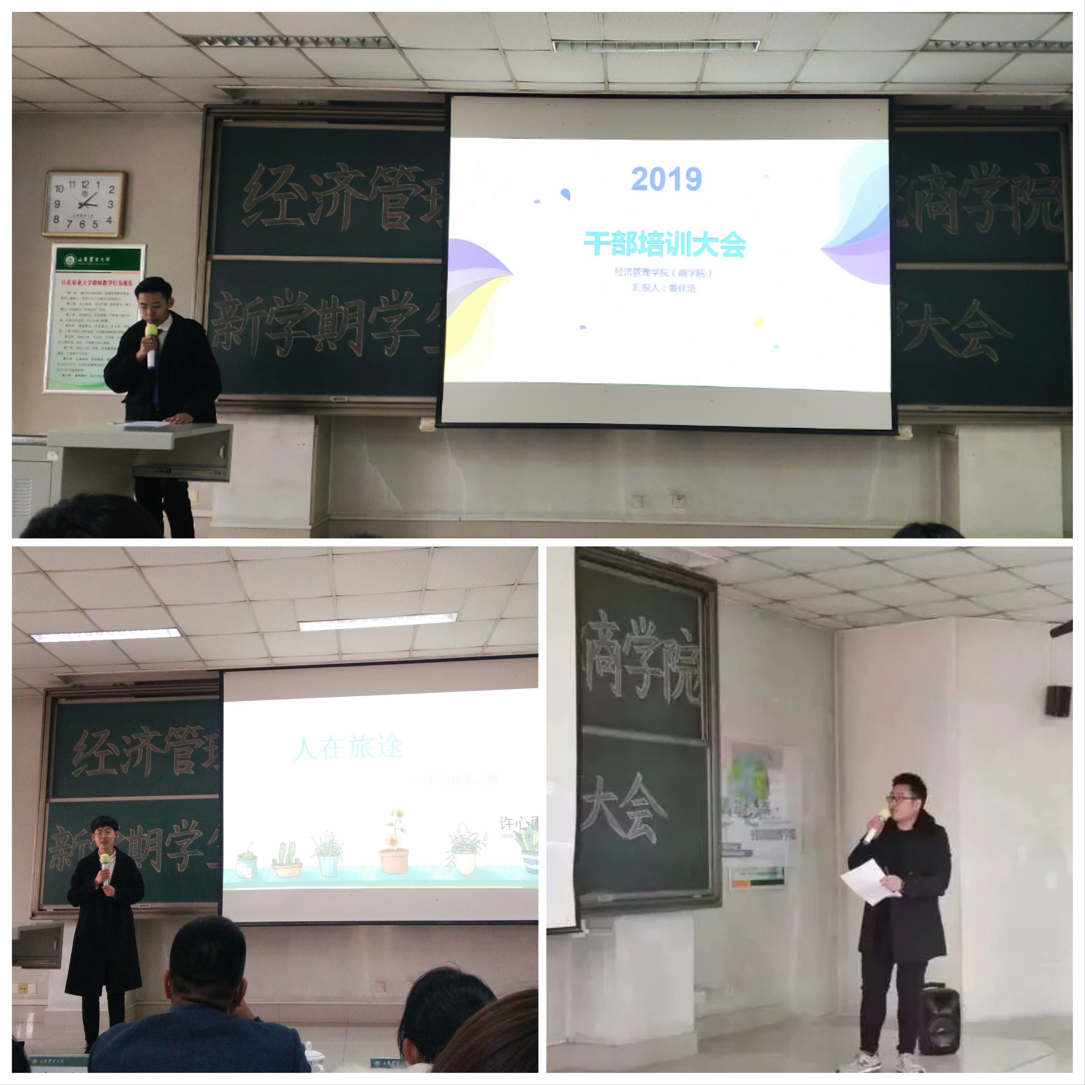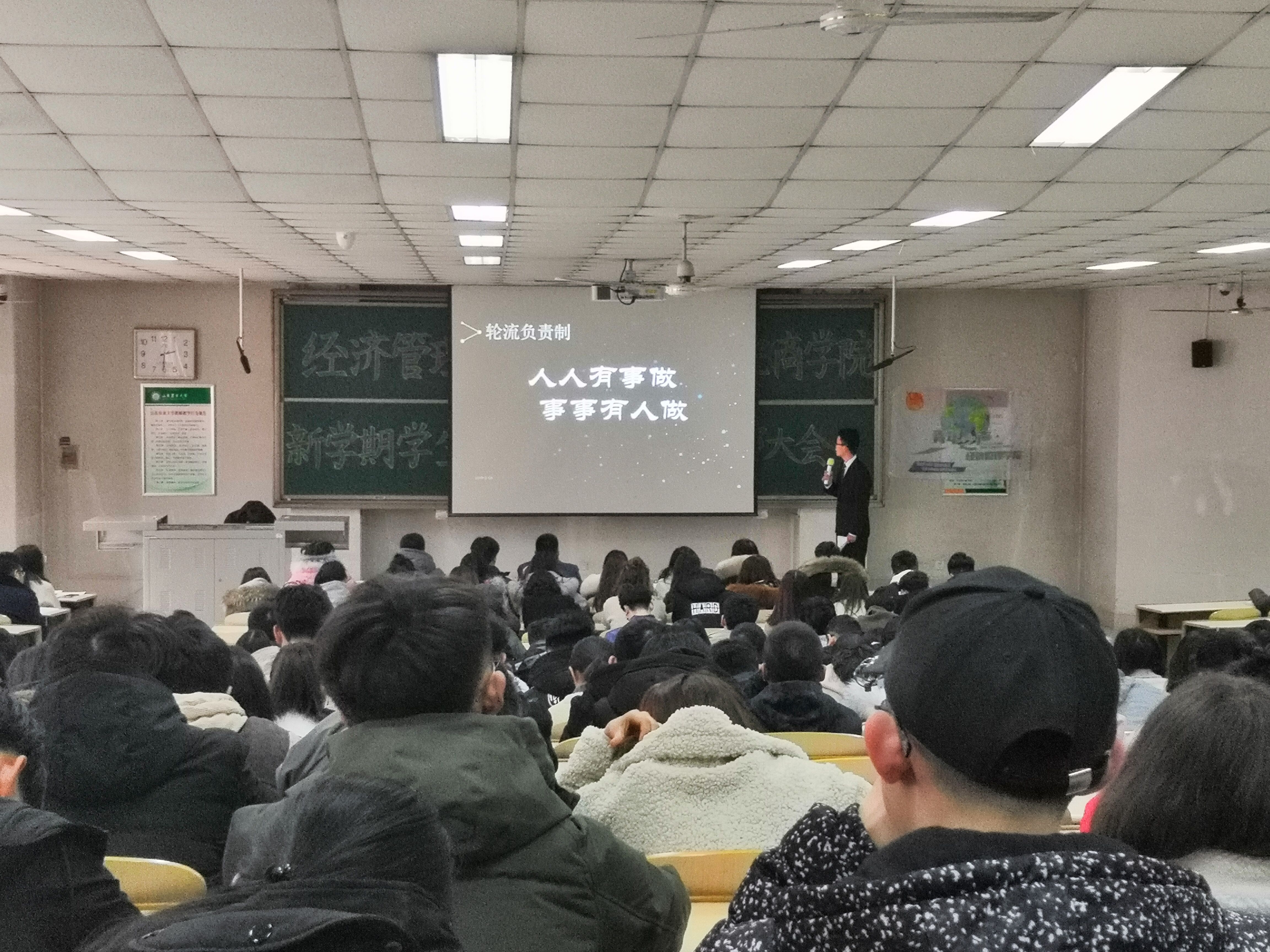 本次大会推选出六位优秀学生干部作报告,与大家交流沟通,分享经验:许心雨从自我定位、新学期班级规划方面进行展示;常军杰提出学生干部要用自身学习带动班级学习;李永强展示了自己班级的轮流负责制,创新班级管理方法;王颖分享了自己“确立目标、保证效率、提高自控力”的学习方法;李秉远与大家交流了在创新创业、学术课题研究等方面的经验;学生会主席姜佳浩就自律与他律、集体与个体以及有形与无形三个方面与同学们探讨了自己对“四自作用”的理解。
