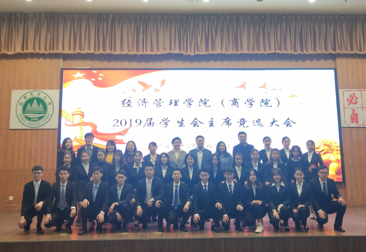 4月13日,大神28预测网站(商学院)2019届学生会主席竞选大会在南校区第一学术报告厅举行。学院党委副书记齐清,全体辅导员,2017、2018年级班长团支书和部分学生会成员参加大会。