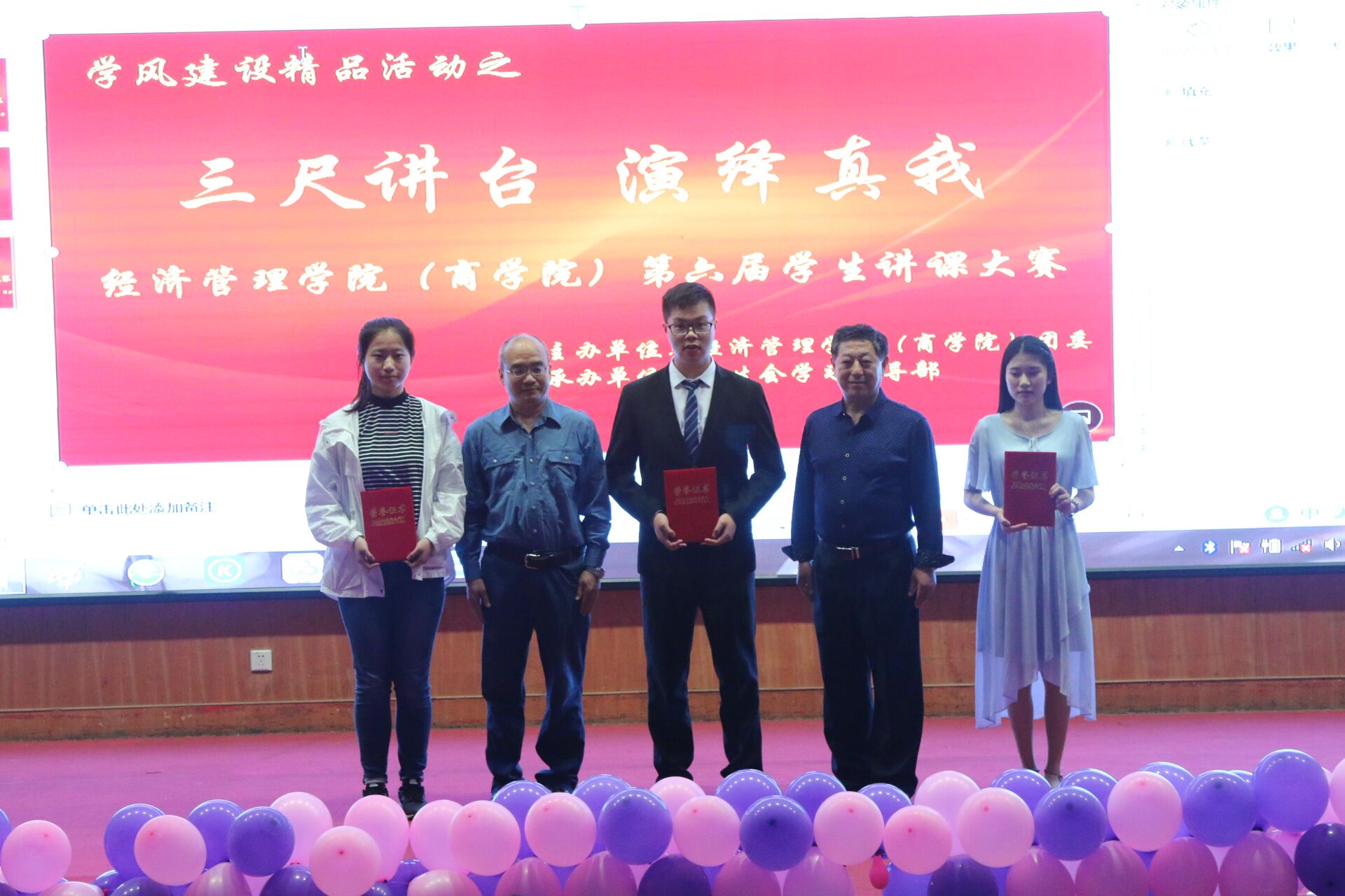 5月14日晚,大神28预测网站第六届大学生讲课比赛在南校区第一学术报告厅举行。工商系王仁强老师和李平英老师、会计系李永珍老师、农经系骆乐老师受邀担任评委,团委辅导员与2018级学生共同观看了此次比赛。