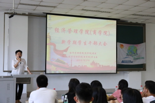 团委书记贾元义老师总结上学期工作并对新学期的工作进行部署。学院党委副书记齐清老师对学院学生干部提出要求:希望大家准确定位,明确职责,提升个人能力,掌握工作技巧,实现自我服务、自我教育、自我管理和自我发展。