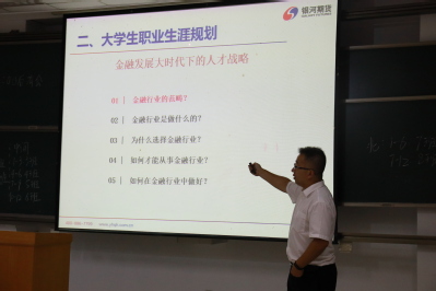 9月5日,“期货知识进校园”讲座在南校区综合楼举办,本次讲座邀请了青岛银河期货高级经理王涌、研发总监隋晓光到场,2017级金融专业全体学生参加了此次讲座。