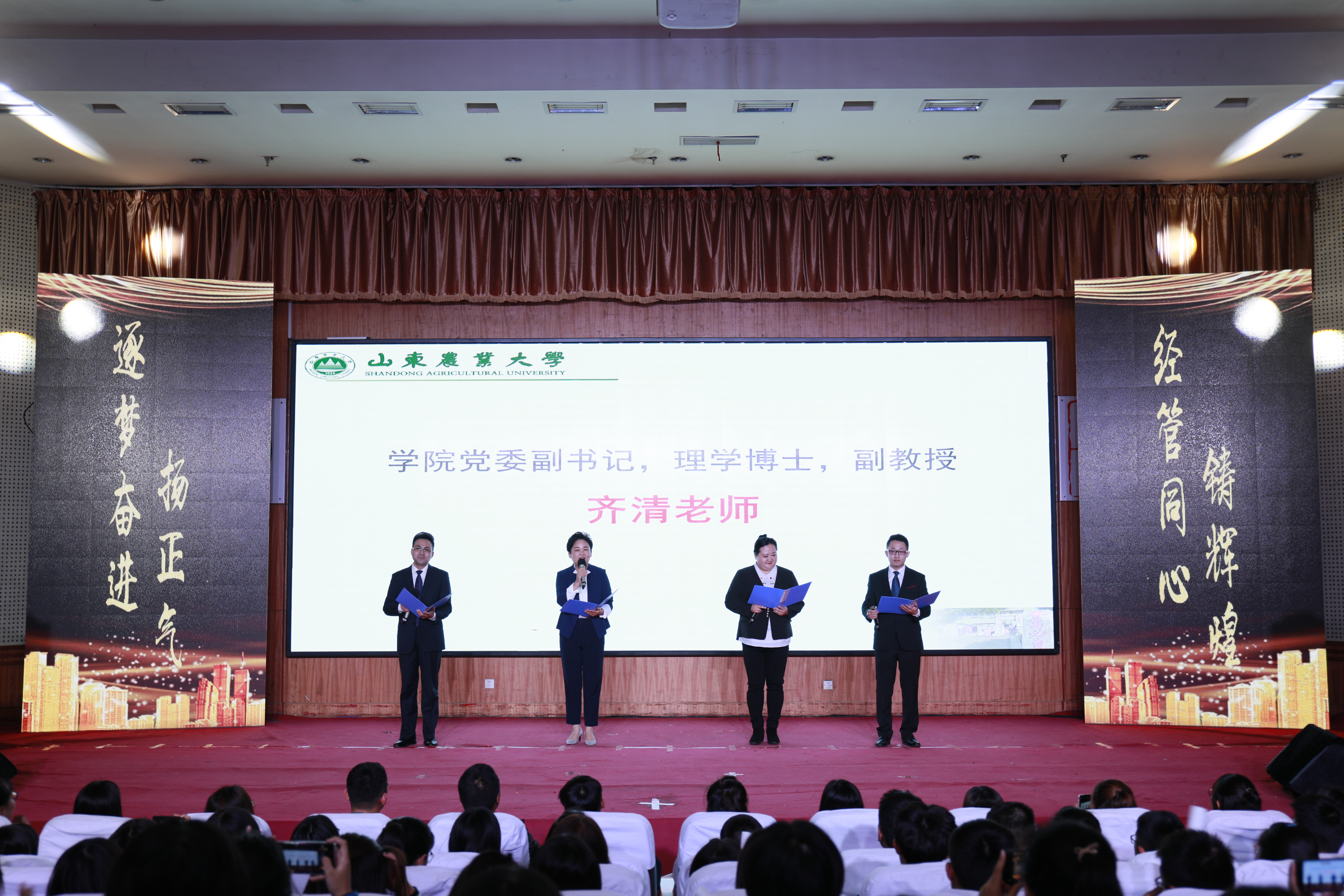 晚会分为轻启华章、激流迎辉、筑梦未来三个篇章。新老生们带来乐器演奏、歌曲连唱、舞蹈串烧,迅速活跃现场氛围;活泼可爱的班助朋辈集体舞蹈《彩虹的微笑》,举手投足间写满了他们对新生的爱;学院2019级藏族新生带来的《草原之舞》,展现了辽阔草原上的藏族风情,他们用特有的方式表达对生活的热爱和对未来的信心;学院党委副书记齐清老师、工商管理系崔丙群老师、张健如老师、在读博士孙乐共同带来师生朗诵《远方不远,未来已来》,用质朴平实的语言,告诉同学们作为一名合格的山农经管人要有爱国的情怀、诚信的品格、豁达的胸怀和奋斗的精神,既接地气,又感人至深;班主任老师、全体团委老师及学生代表共同带来的师生走秀,传递了浓浓师生情。现场掌声阵阵,将晚会气氛推向高潮。