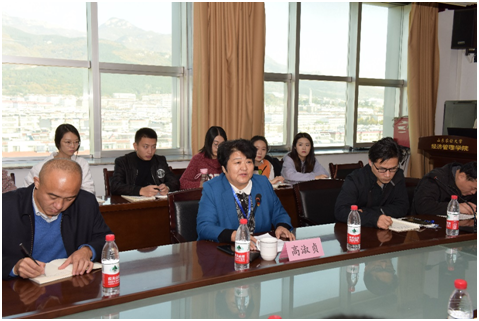 院长陈盛伟向高淑贞介绍了学院在服务地方发展,走进乡村、建设乡村,助力乡村振兴的实践和经验。党委书记魏立政号召全体党员,要认真学习高淑贞同志一心为民、乐于奉献的优秀品质,和不畏艰难、担当干事的先进精神,不忘初心、牢记使命,以党建引领教学、科研工作,为学院发展贡献自己的力量。