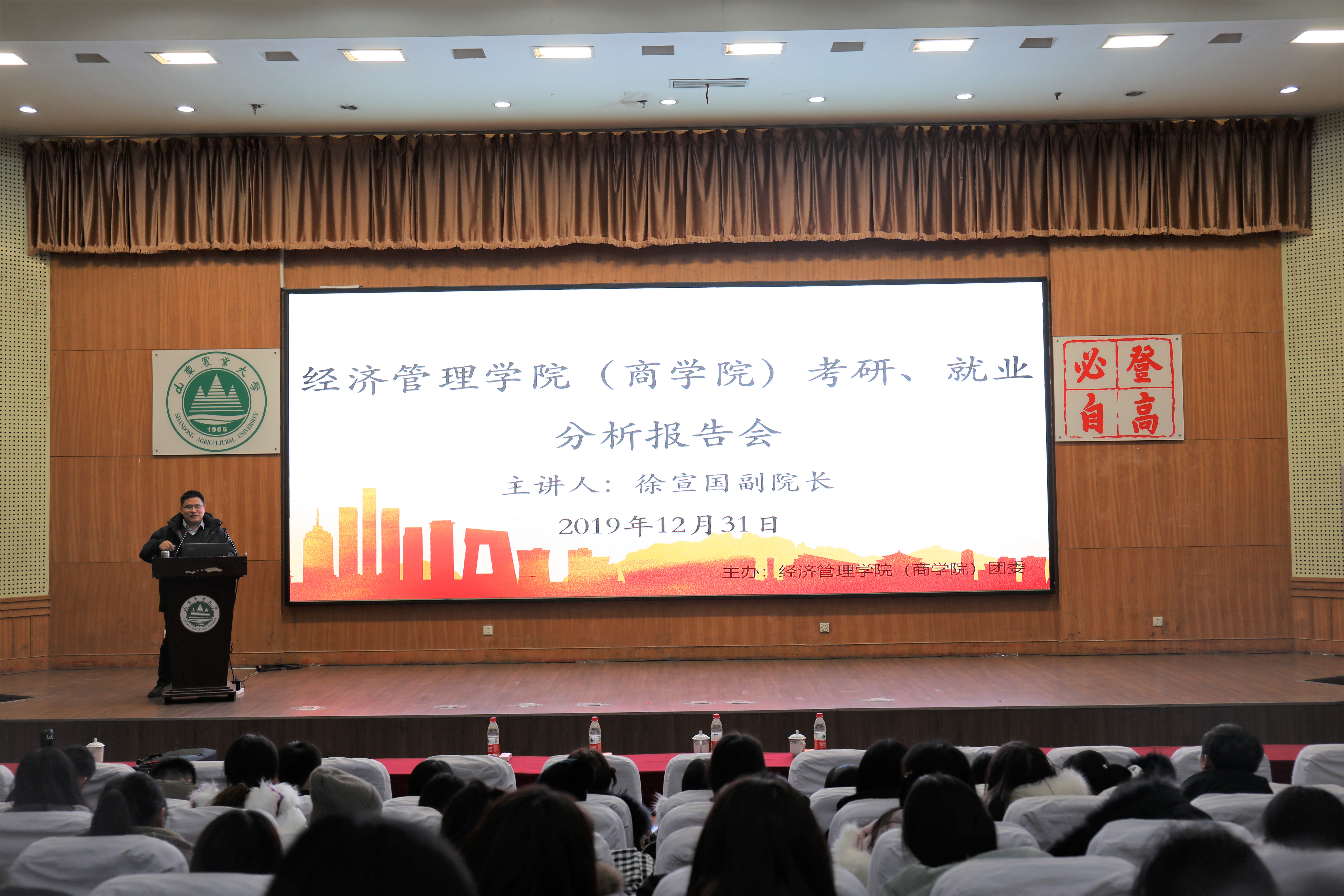 12月31日晚,大神28预测网站考研与就业报告会在南校区第一学术报告厅举行。报告会由学院副院长徐宣国主讲,现场座无虚席,吸引了近500名2017级同学自愿参加。