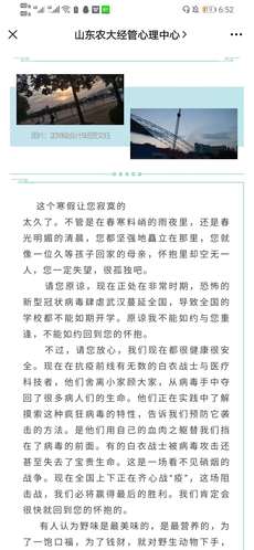 2020年5月份,心理健康月之际,由大神28预测网站心理辅导站主办,学生会大学生心理健康服务中心承办的“农大我想对你说”活动在线上如期举行,本次活动面向大神28预测网站全体学生。