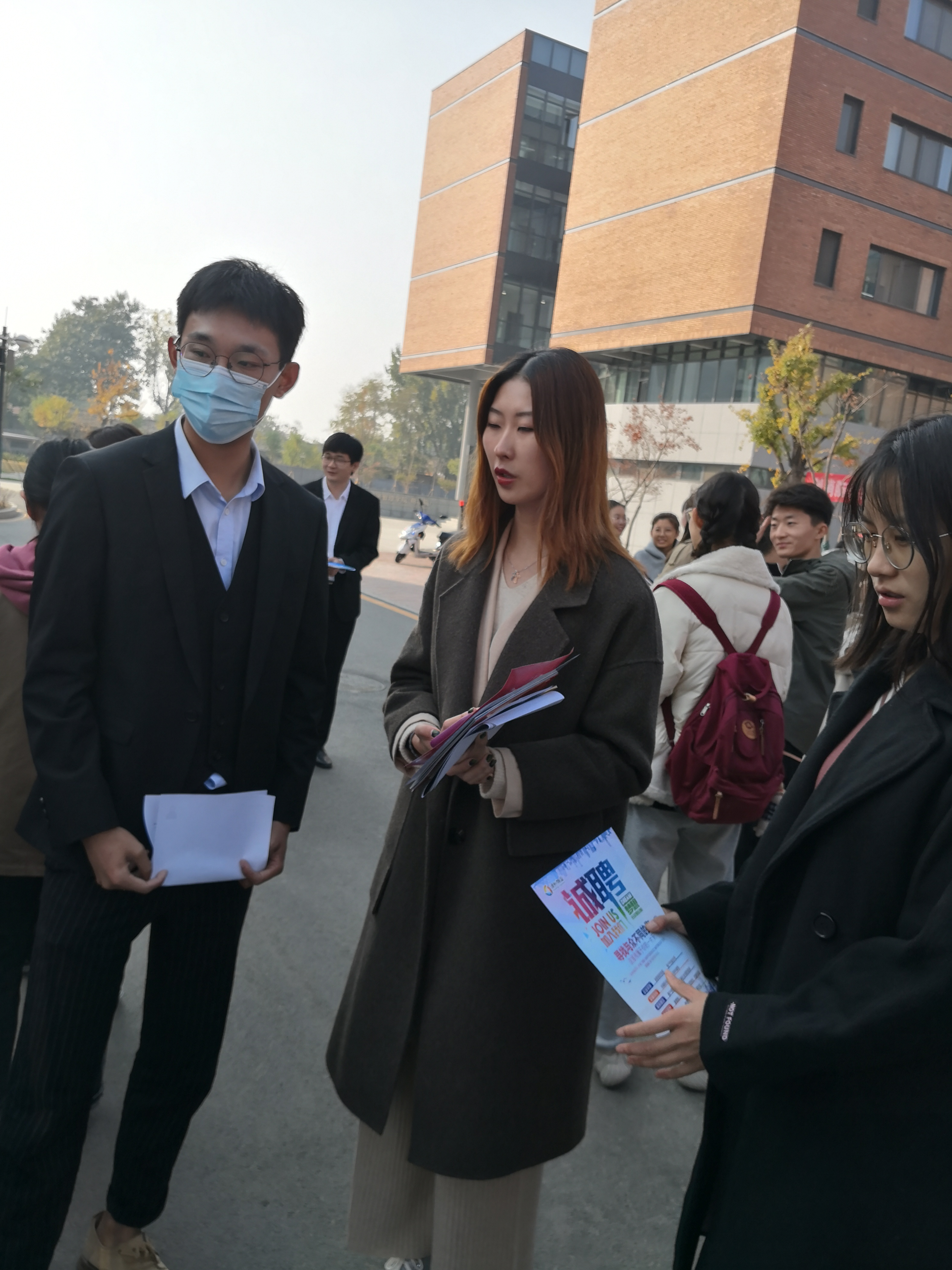 学院领导老师高度重视此次招聘会。学院党委副书记贾元义老师莅临现场指导工作,并与用人单位亲切交流,为同学们提供意见和建议。招聘会结束后,中信证券(山东)、泰康人寿等企业展开线下宣讲会,与毕业生展开面对面交流,增进供需双方了解沟通。