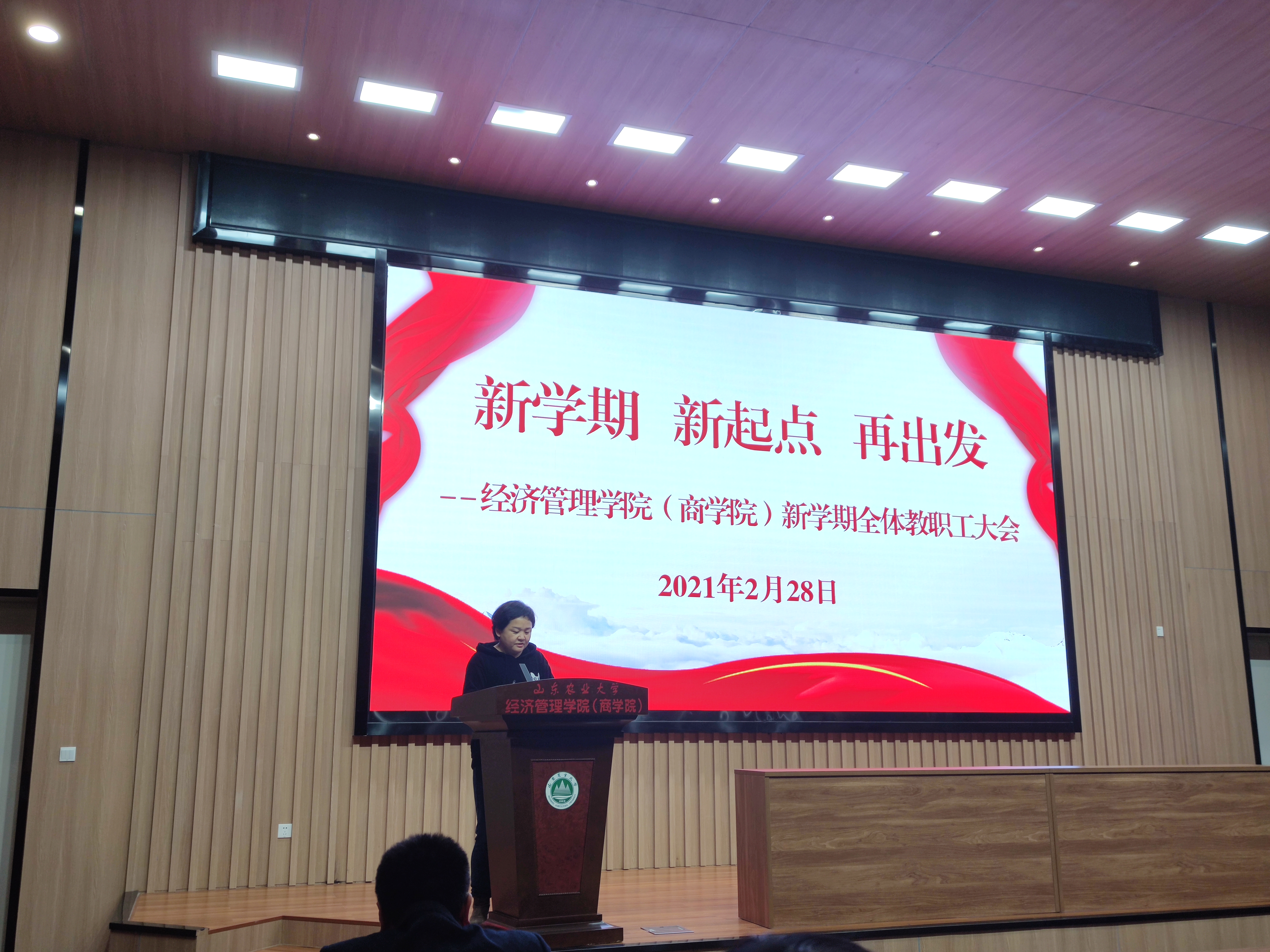 为更好的凝聚学院力量、统一思想、明确方向,228日学院召开以“新学期,新起点,再出发”为主题的新学期全体教职工大会,党委书记齐清主持会议。会上,齐清传达了学校党委中心组学习暨处级干部工作研讨班会议精神。她强调,各部门要做到步调统一,共同助力学院发展,以优异成绩迎接中国共产党成立100周年