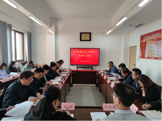 4月6日下午,学院在行政楼423党员活动室召开党史学习教育专题党委扩大会议,学院党委委员、全体党支部书记参加会议。