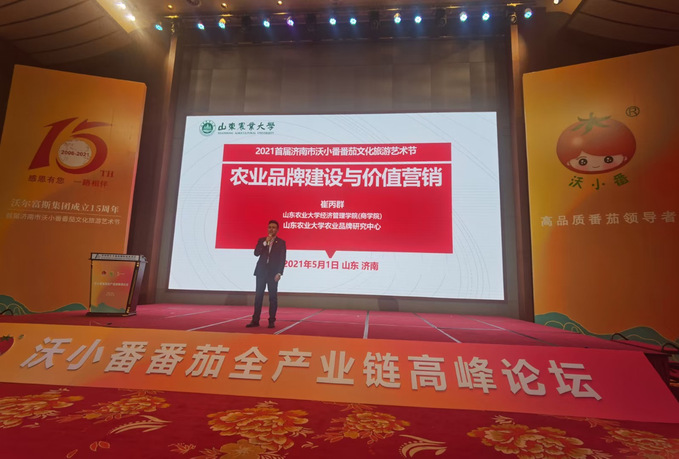 5月1日-2日,“沃小番番茄全产业链高峰论坛”、“沃小番现代番茄全球种源国际科技创新中心(筹建)研讨会”举行,陈盛伟院长跟我国著名蔬菜育种专家、东北农大教授李景富,福建农林园艺学院院长陈清西、北京真农本樯董事长梅强、品牌农业总编辑陈敬谦等共同出席了“沃小番”品牌发布会及“未来番茄 赢在价值链”高端对话,陈院长详细阐述了限制我国农业品牌发展的“品牌专属权难”、“品牌扩张难”、“品牌集成难”、“品牌个性化难”、“品质稳定难”、“成本降低难”等六大难题,并以沃尔富斯集团为例提出了应对解决方案。崔丙群主任在高峰论坛上进行了题为“农业品牌建设与价值营销”的主旨演讲,提出“以全产业链品牌战略思维和全系统市场营销策略组合实现品牌定位和价值创造”的农业品牌建设路径,分享了农业品牌研究中心在农业品牌建设及农产品市场营销等方面的研究成果及观点。