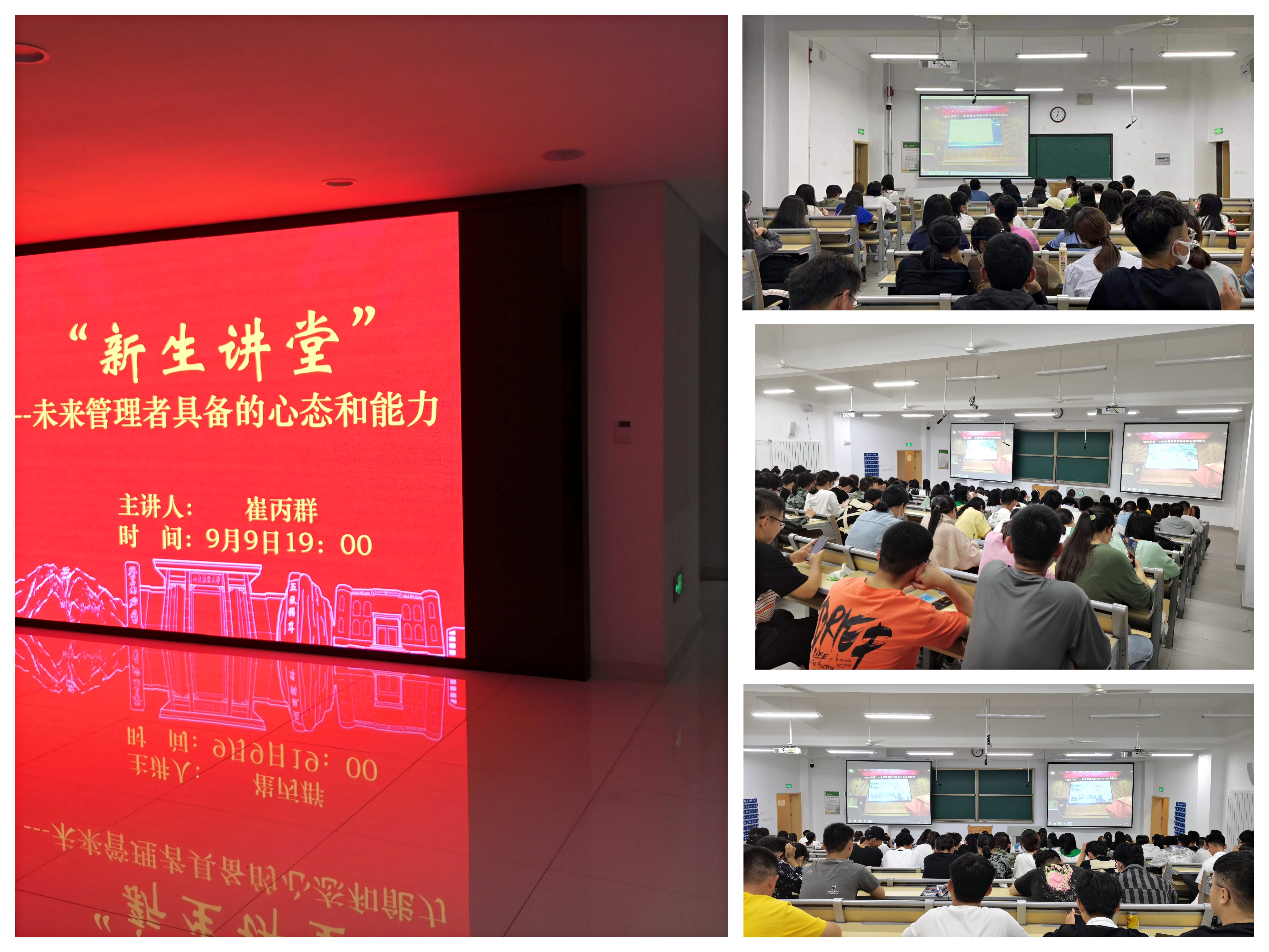 崔丙群老师专业的角度介绍了管理的内涵,从心态、宽容、责任、合作”四个维度向新生讲授未来管理者所具备的技能、遇到的困难和解决问题的方法整场讲座,崔老师风趣睿智、引经据典新生同学们积极互动,受益匪浅