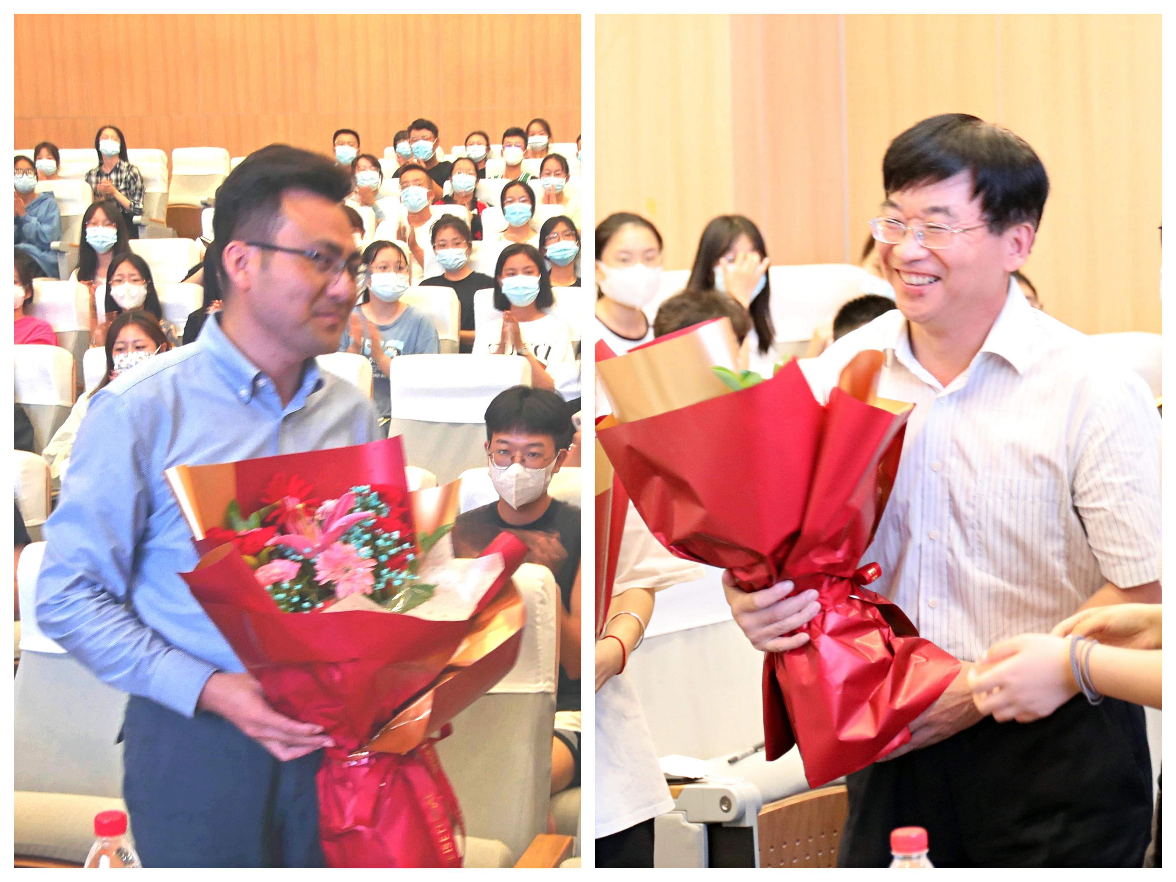 开讲前,2021级新生代表为老师送上诚挚的祝福,祝福老师们教师节快乐。院长陈盛伟在主持时向全体新生介绍了学院的办学实力叮嘱同学们把握好平台,重新认识自己,努力学习专业知识,成就属于自己的精彩人生。