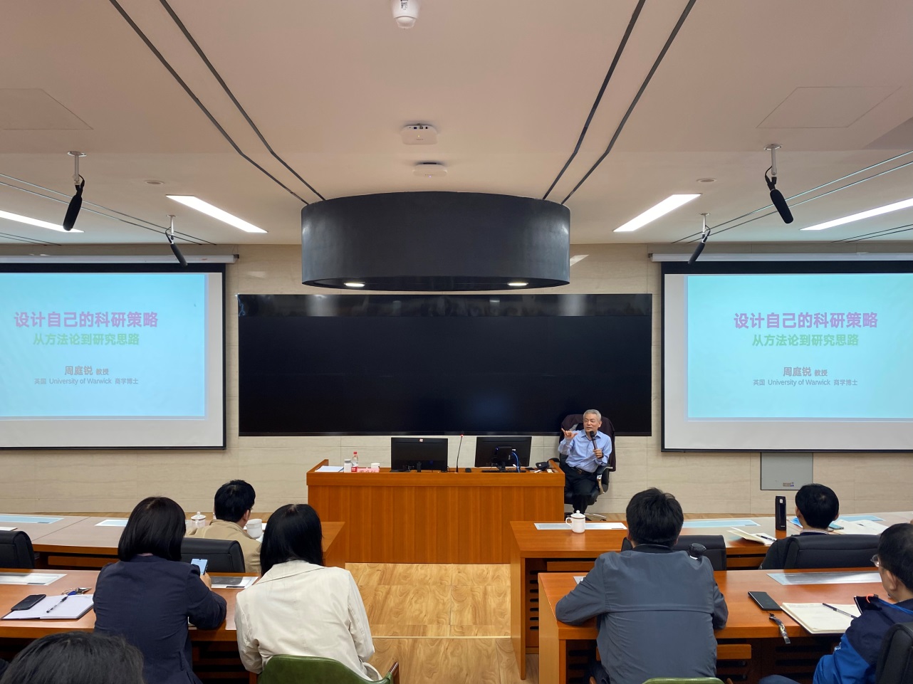 10月9日上午,英国University of Warwick商学博士周庭锐教授来学院做题为《设计自己的科研策略——从方法论到研究思路》的学术报告。报告会由副院长徐宣国主持,院长陈盛伟及部分教师和研究生100余人参加。