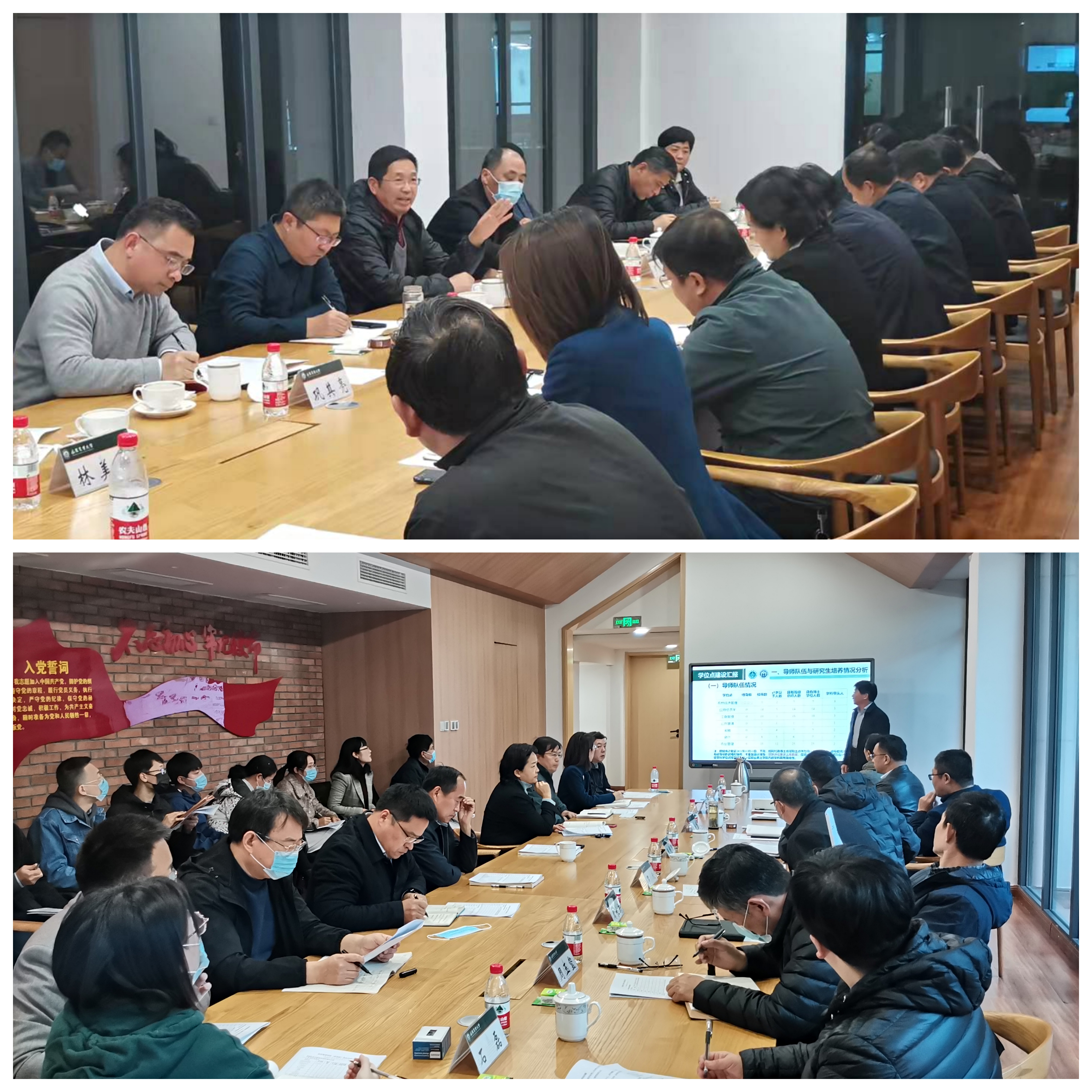 会上,院长陈盛伟从导师队伍与研究生培养情况、学位点现状及存在问题、学位点建设发展举措三个方面进行了详细分析,并汇报了学院人才引进、平台和团队建设、制度建设等工作进展。