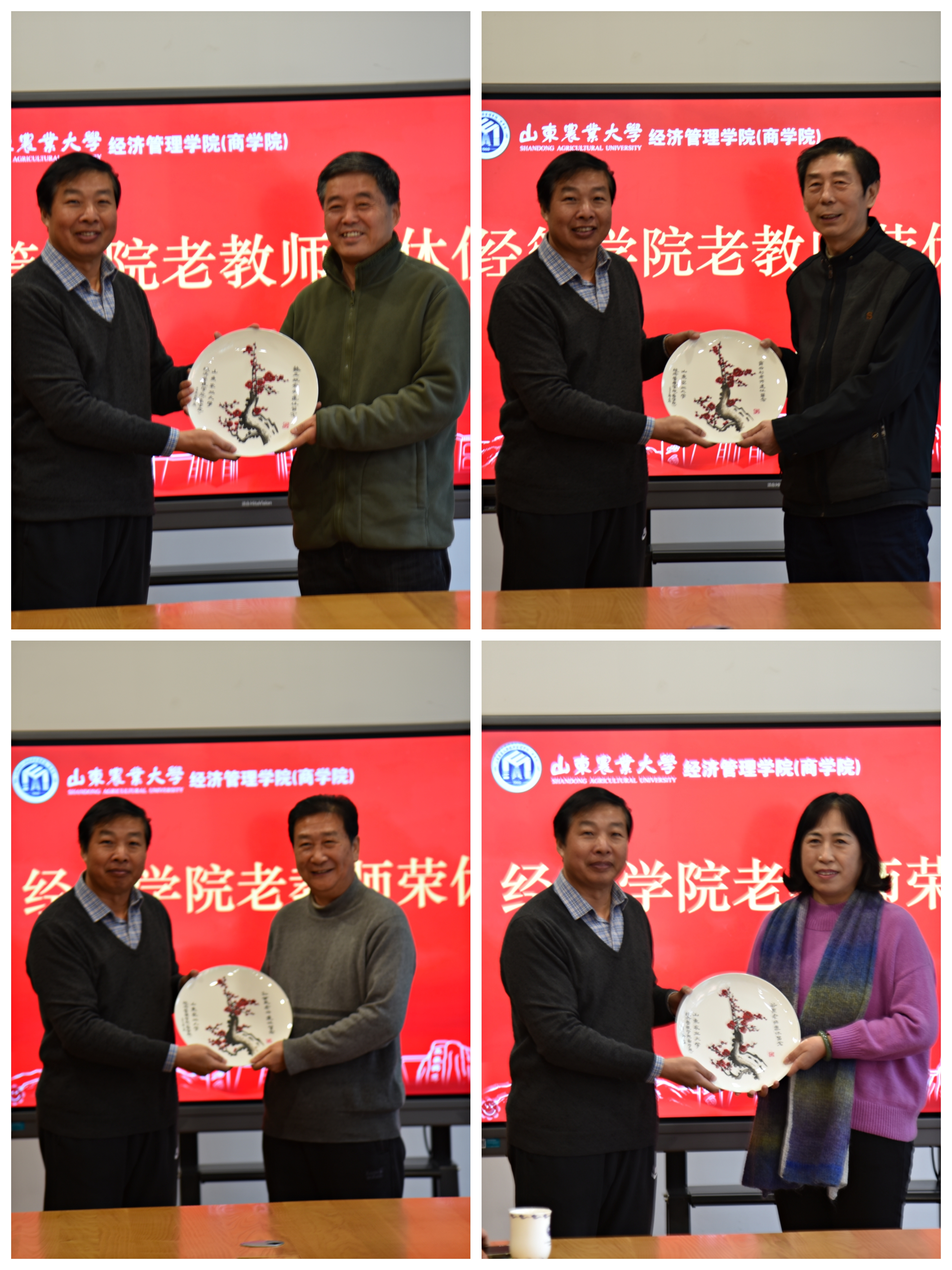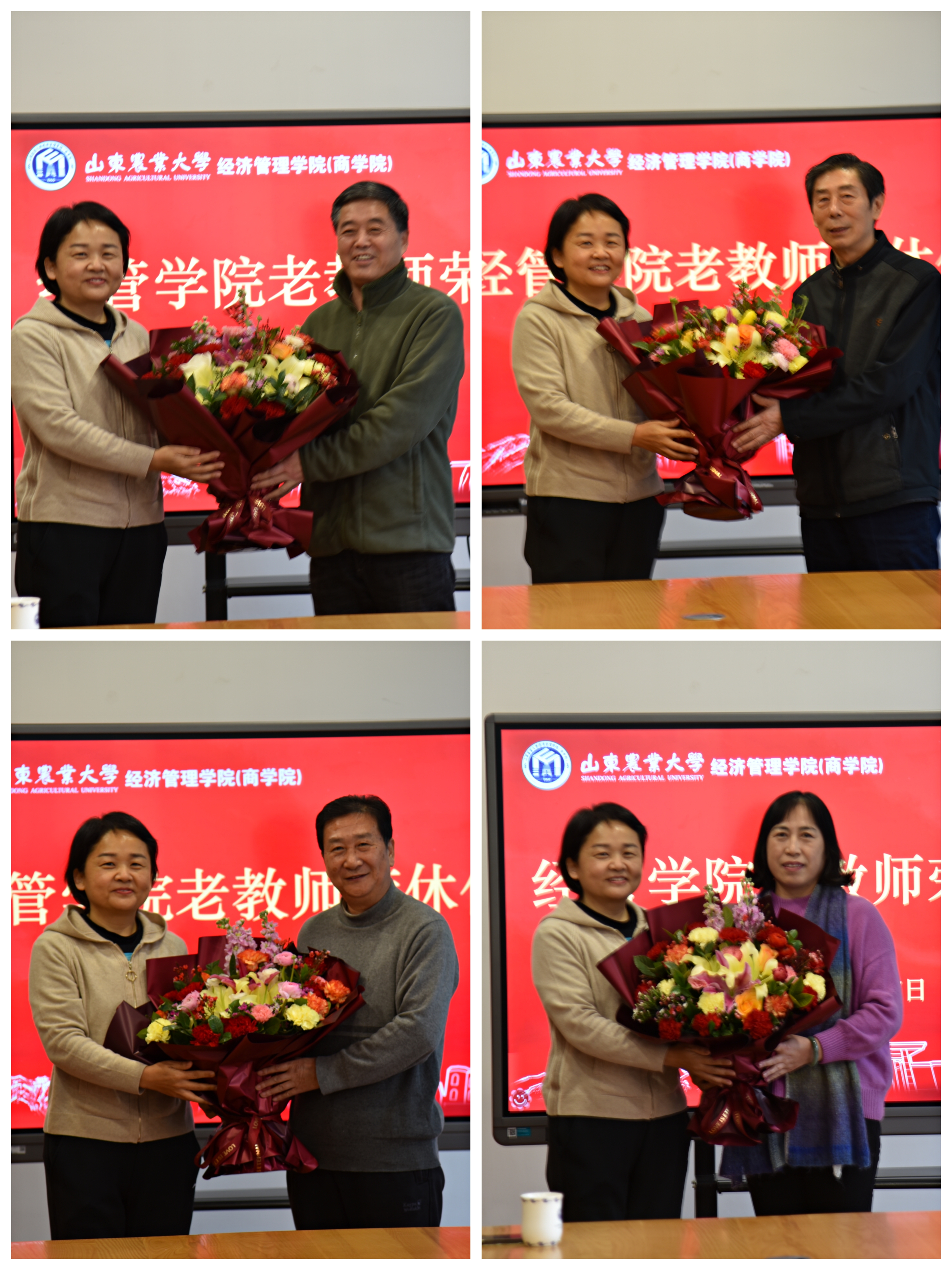 2022年,学院共有魏立政书记、薛兴利教授、孙世民教授、谷栗教授4位教职工荣休。齐清书记和葛颜祥教授分别为四位参加荣休仪式的教职工颁发学院特制的荣休纪念牌和鲜花。