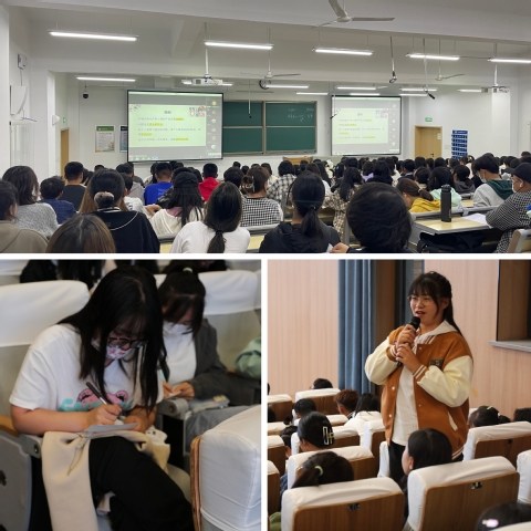 讲座伊始,贺老师与同学们合作了一段由语言引导,肢体语言配合演奏的“雨点变奏曲”,现场气氛活跃融洽。贺老师以实际问题为切入点,从接纳“心”困扰、学习“心”适应、实现“心”成长三个方面出发,结合现实案例与自身经验,引导同学们接纳“心”困惑,走出舒适区,指导同学们制定目标和计划,学会学习,学会“爱”、学会生活、学会求助。此次讲座,贺老师以幽默风趣的语言与同学们进行交流与互动,取得了良好的效果。