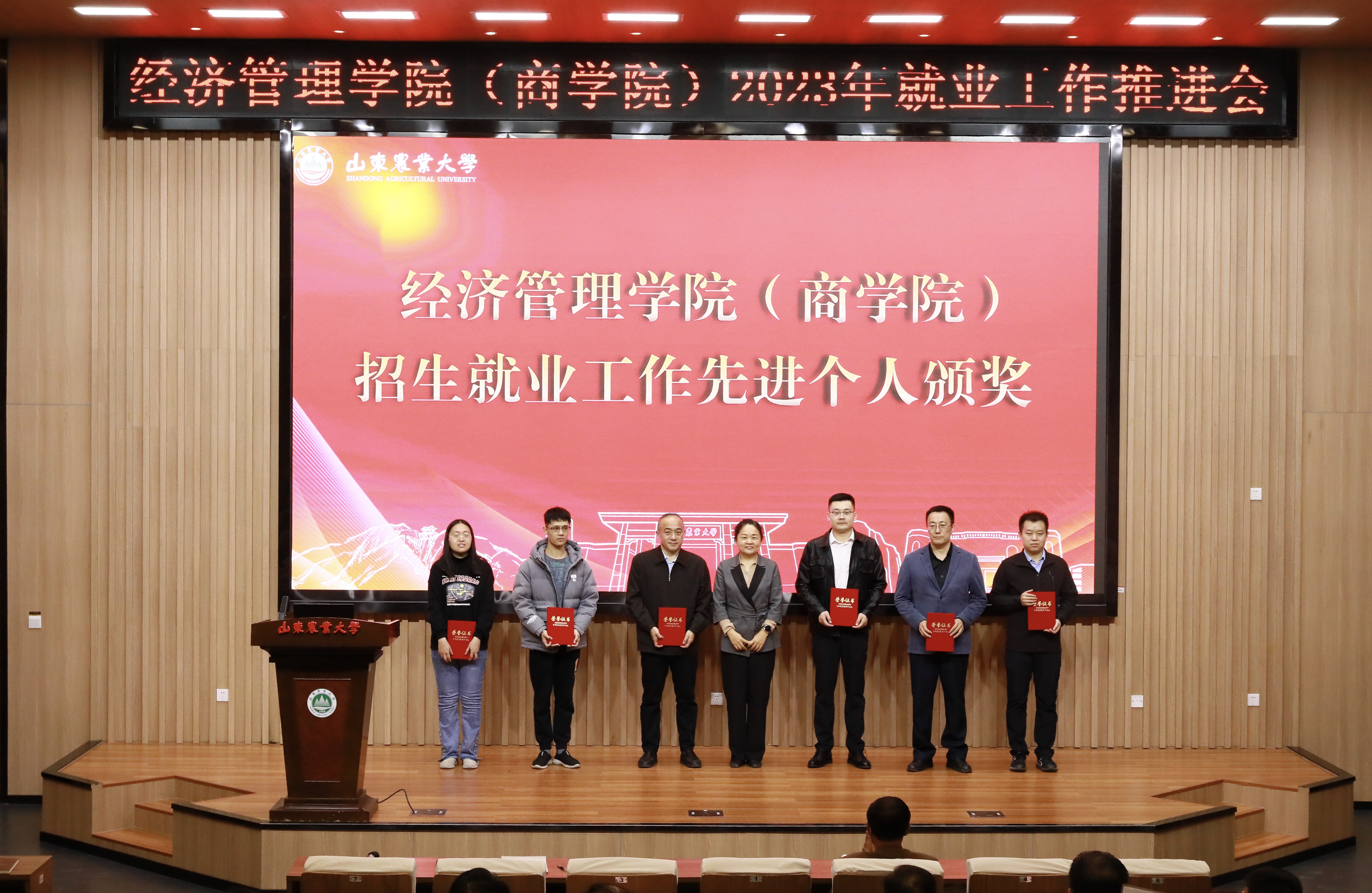 会议对2021—2022学年就业工作先进个人进行表彰,国际经济与贸易专业教师孙兆东、金融学专业教师牛浩分别作典型发言。