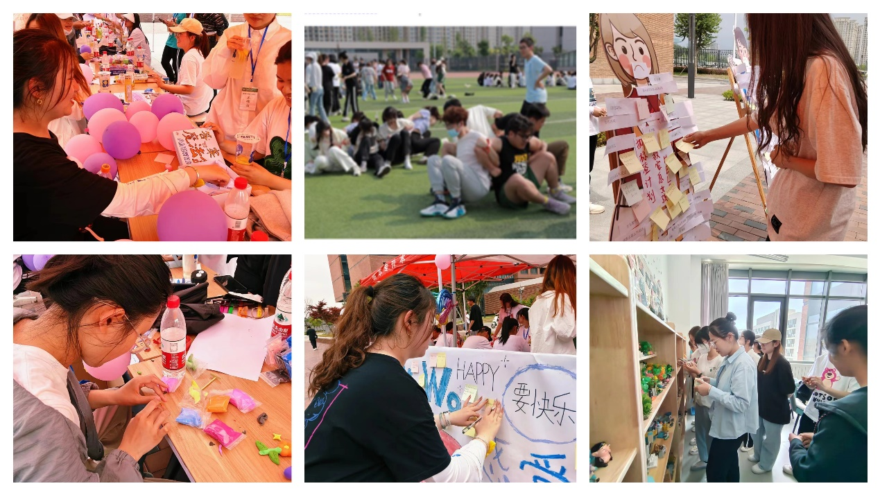 活动分测试区、手工区、书写区、游戏区、参观区以及趣味运动会分区,引导同学们通过妙笔绘画、手工制作、互赠话语等方式,静心创作、享受愉悦,在工作人员的引导下思考并探寻内心的感受,舒缓心理压力。通过撕签计划、情绪气球等游戏合理地宣泄情绪,稳定心态。随后,工作人员带领学生参观经管心理辅导站,对辅导站内部设备进行讲解,并引导同学们进行体验。最后同学们走向操场,组队参加趣味运动会,在合作与竞争中体验青春的活力与朝气。现场活动气氛热烈,丰富了同学们的校园生活,给同学们创造了一个认识自己、了解他人的平台,增进了同学们之间的情感链接。