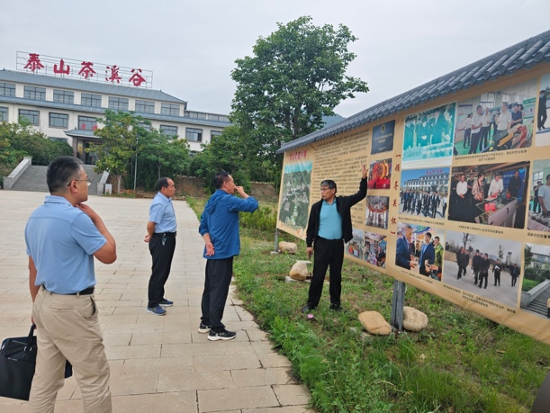 周玉玺一行先后来到泰山茶溪谷培训中心报告厅、泰山茶育种及标准化种植基地、泰山非遗小镇、泰山茶产业研究院、大学生创新创业孵化平台等,详细了解公司情况。