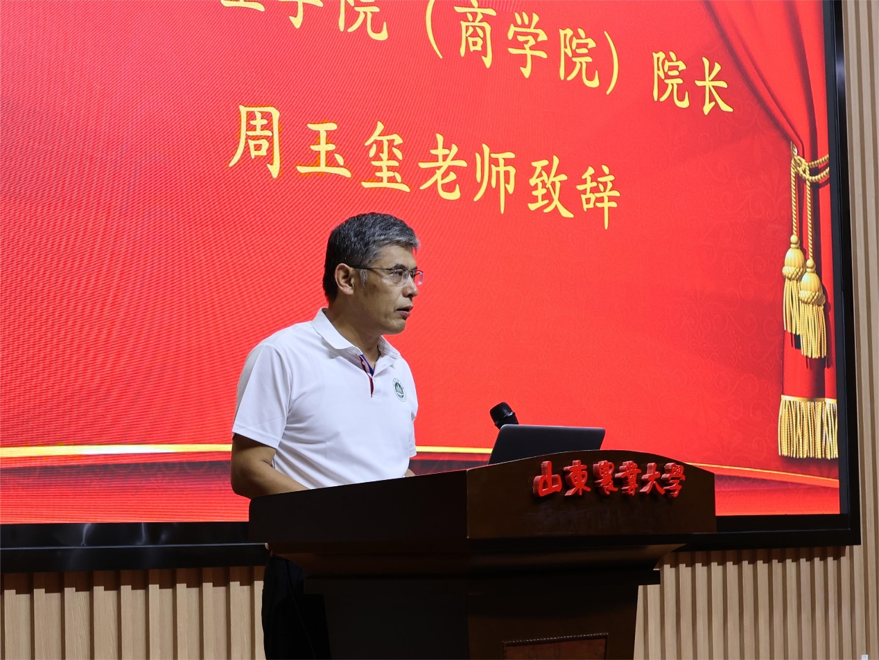 院长周玉玺在开学典礼上代表学院和全体老师对新一届研究生表示热烈欢迎,对即将踏入学术新征途的新生们嘱以殷殷期望。希望同学们勇于挑战,勇于突破自我,敢于尝试,敢于批判,敢于接受批判,相信自己一定可以把不可能变成可能。只要坚定信心,就一定能够取得成功,希望同学们在未来的研究生生活中,秉承“登高必自”校训,弘扬创新开放、包容共享的院文化,立足当下,全力以赴,实现人生中最美丽的一次蜕变。