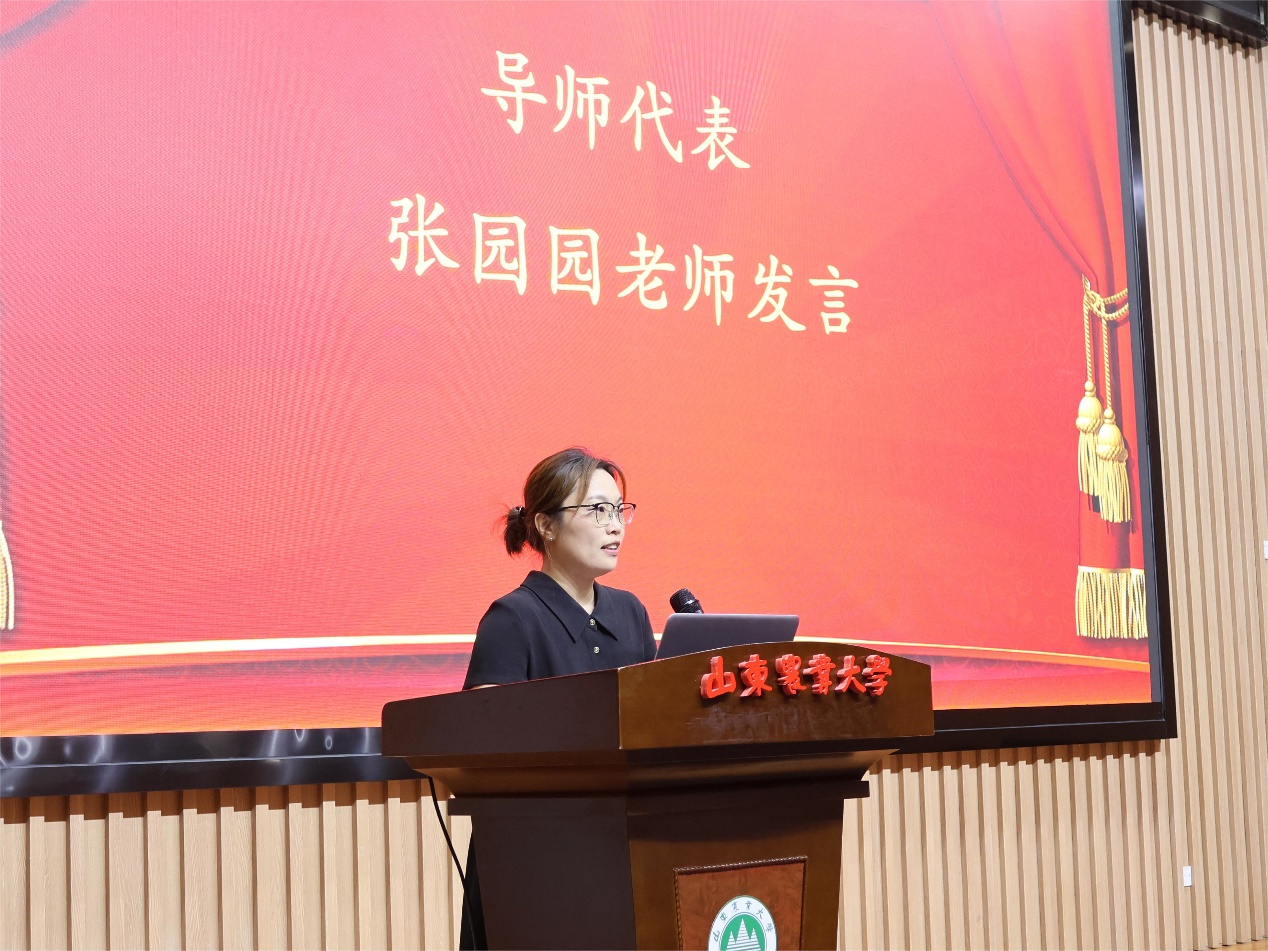 导师代表张园园在讲话中分享了自己与农大的际遇,耐得住寂寞才能守得住繁华,熬的住孤独才能等得到花开,一切美好都孕育在砥砺的努力之中,一切美好都是汗水浇灌的如期而至,每一份坚守都将变成璀璨的花朵,这是山农经管人永恒不变的信条。希望同学们在这里用知识和能力武装自己,为今后选岗就业和步入社会蓄力。