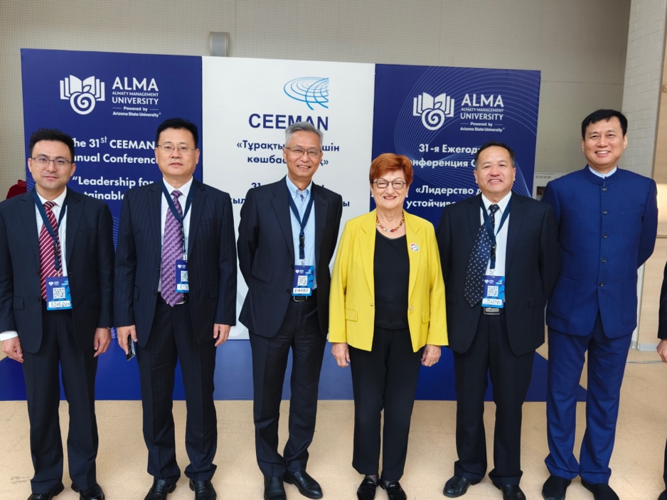 近日,学校党委副书记嵇景涛率团参加在哈萨克斯坦阿拉木图管理大学举办的第31届全球新兴经济体商学院联盟(CEEMAN)年会,落实学校党委书记徐剑波访欧达成的合作意向,深化务实合作,促进互利共赢,我院在本届年会上成功加入全球新兴经济体商学院联盟(CEEMAN)并达成多项合作意向,学院副院长崔丙群随团参加活动。