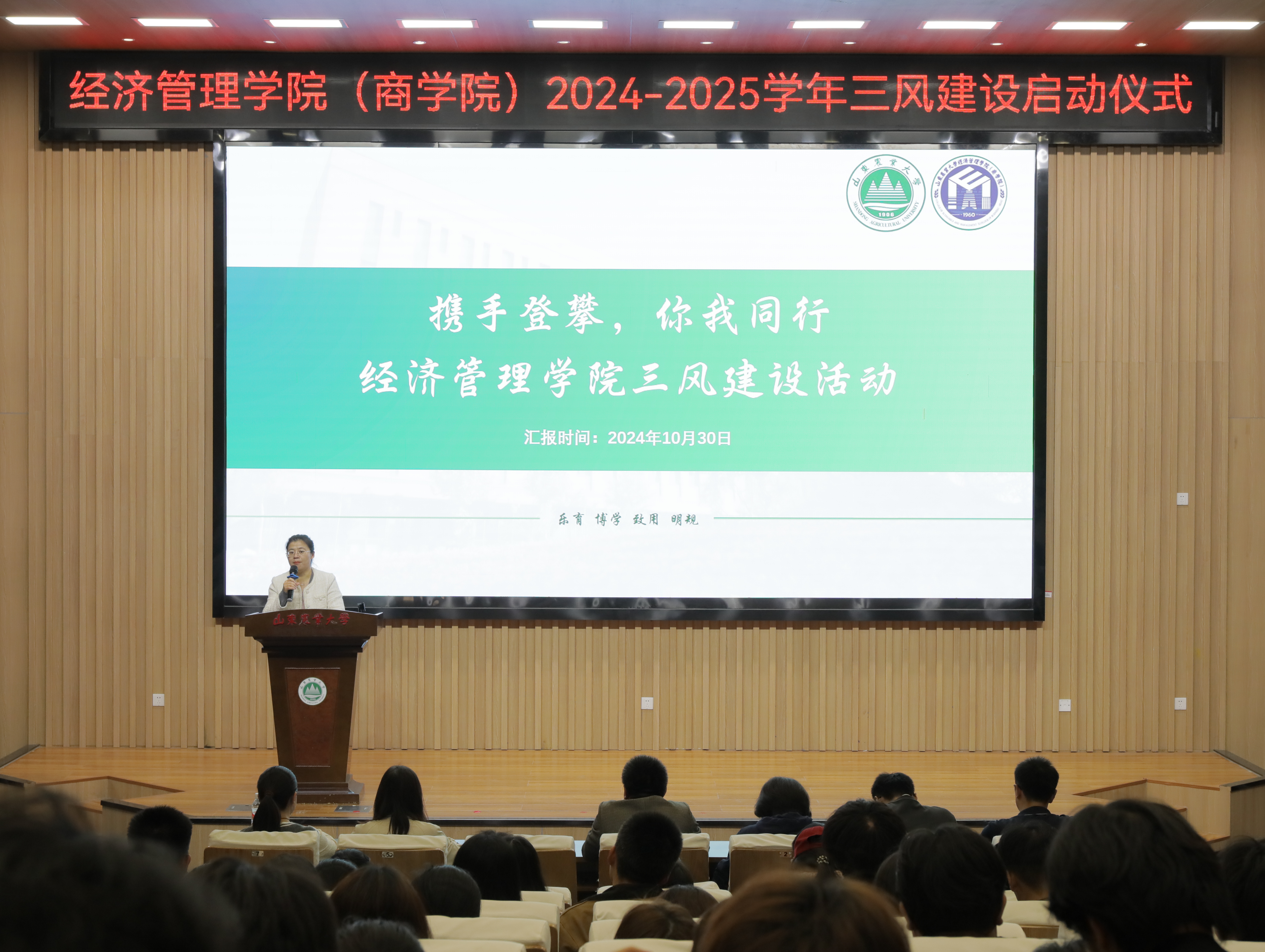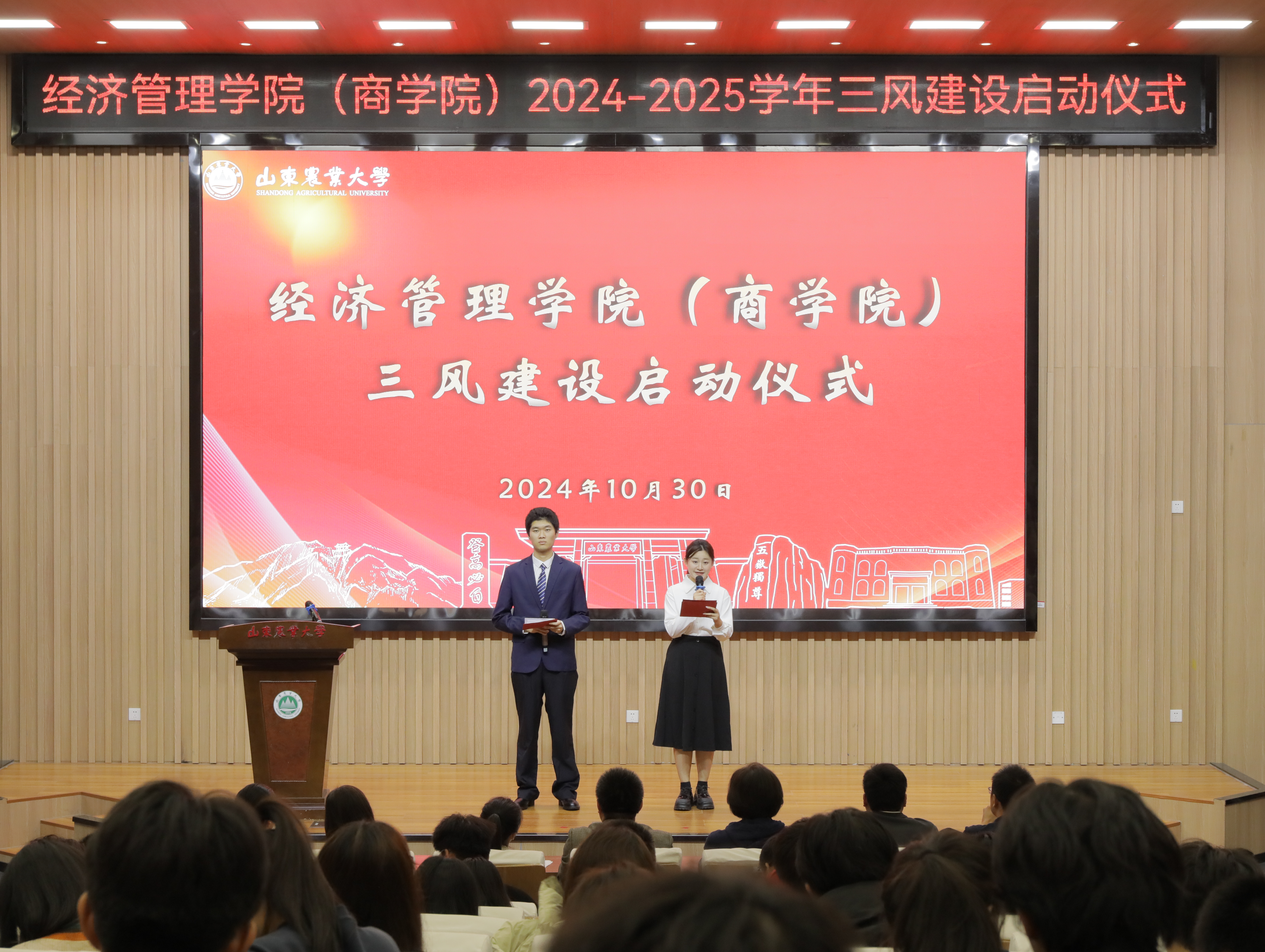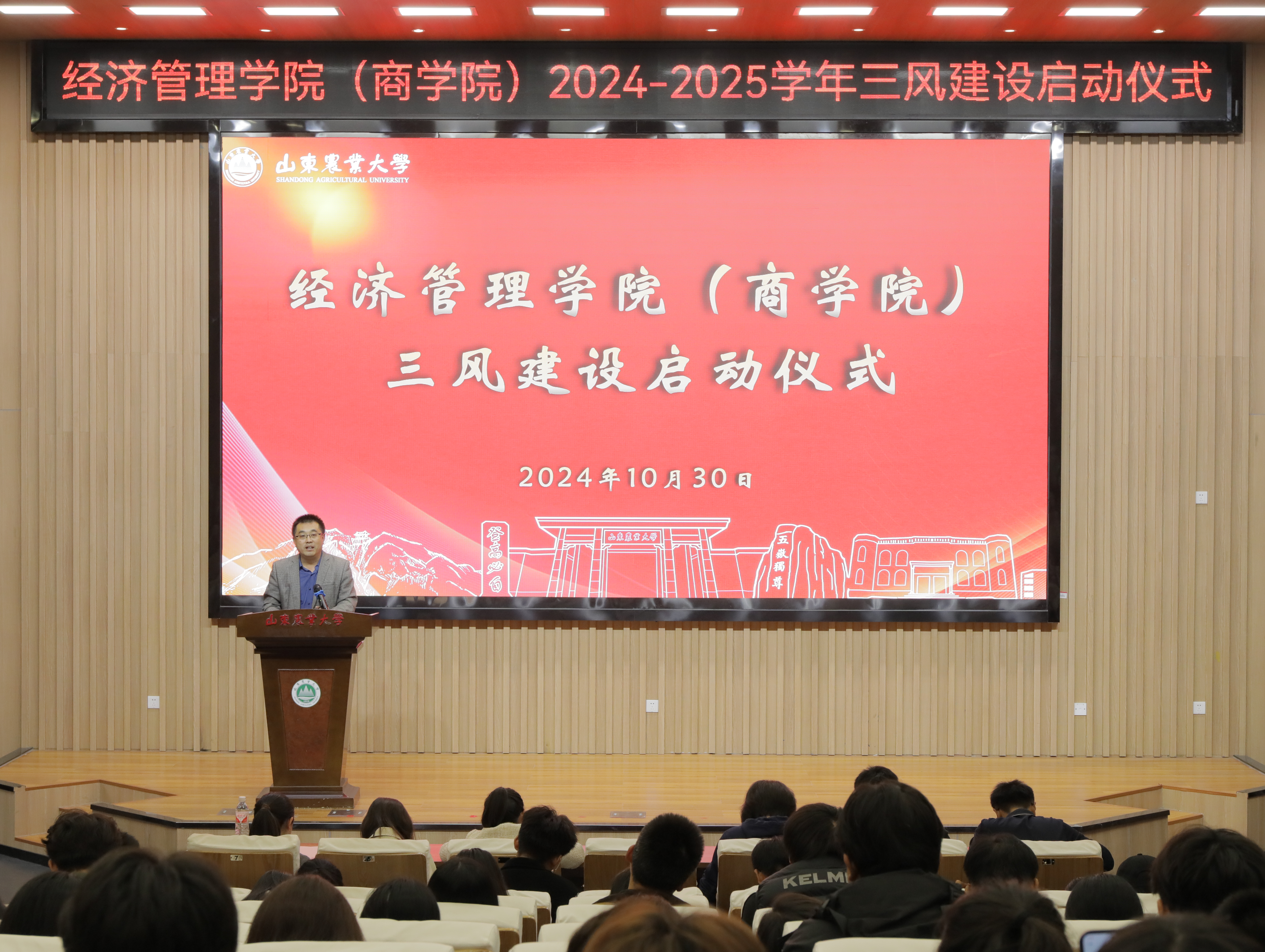 10月30日,大神28预测网站“强舍风、促班风、厚学风”三风建设主题活动启动仪式在泮河校区西北片区学术报告厅举行。学院党委副书记殷桂堂、团委全体辅导员出席活动,2024级班长、团支书、学习委员及部分舍长代表参加本次启动仪式。