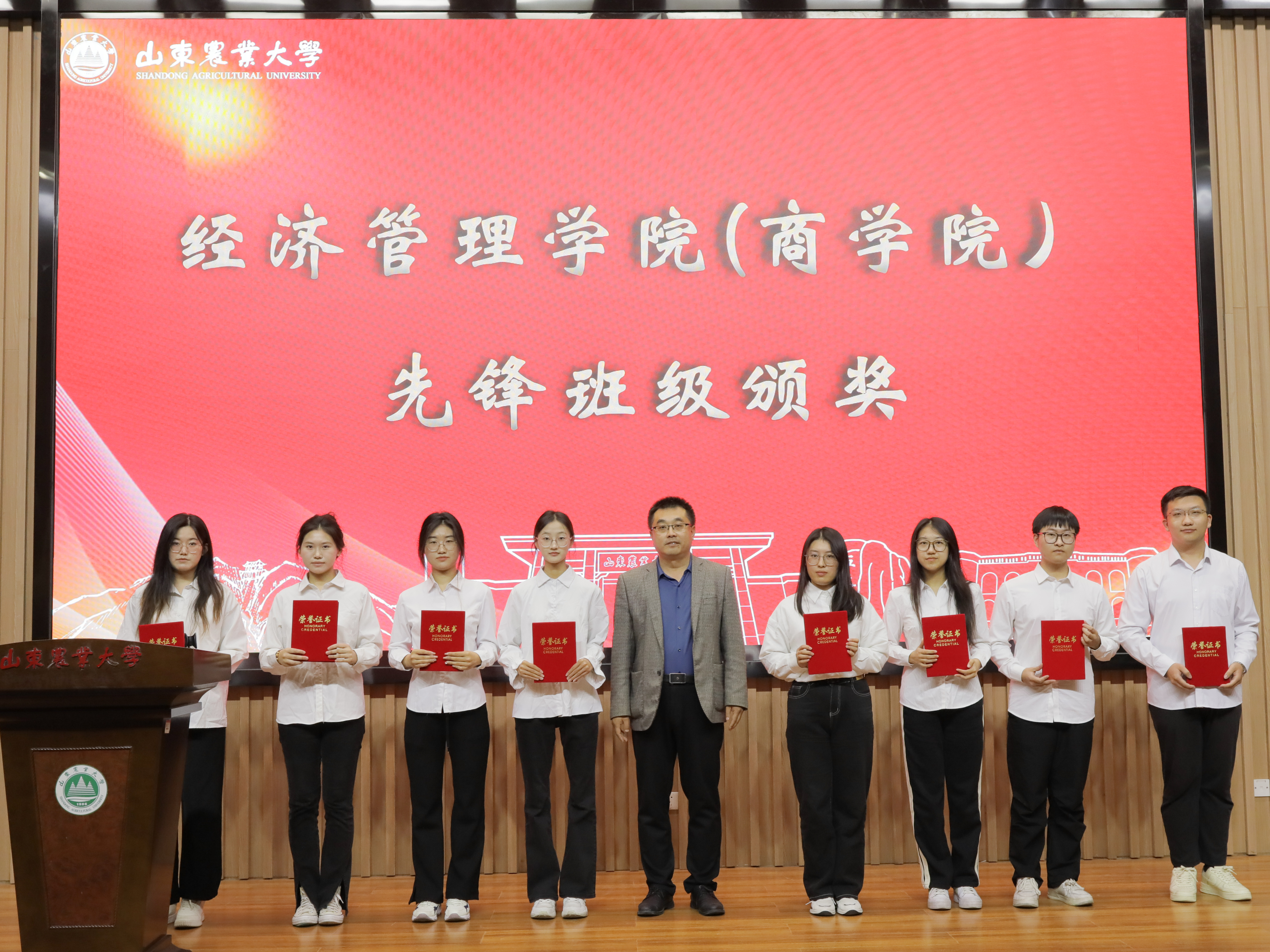 党委副书记殷桂堂老师为受表彰班级、宿舍颁奖。随后,殷桂堂老师对“三风建设”的实施提出具体要求和建议。他指出,良好的舍风、班风、学风是学生提高个人综合素质能力的基础,是个人成长的重要依托。他强调,宿舍是大学生学习、生活、交往的重要场所,班级是课程育人、科研育人、文化育人的主渠道,学习是学生的第一要务,良好的舍风、班风是孕育丰厚学风的重要源泉。最后,鼓励学生们要团结互助,形成强大的凝聚力,推动“三风建设”不断向前发展,共同营造良好学习生活环境。