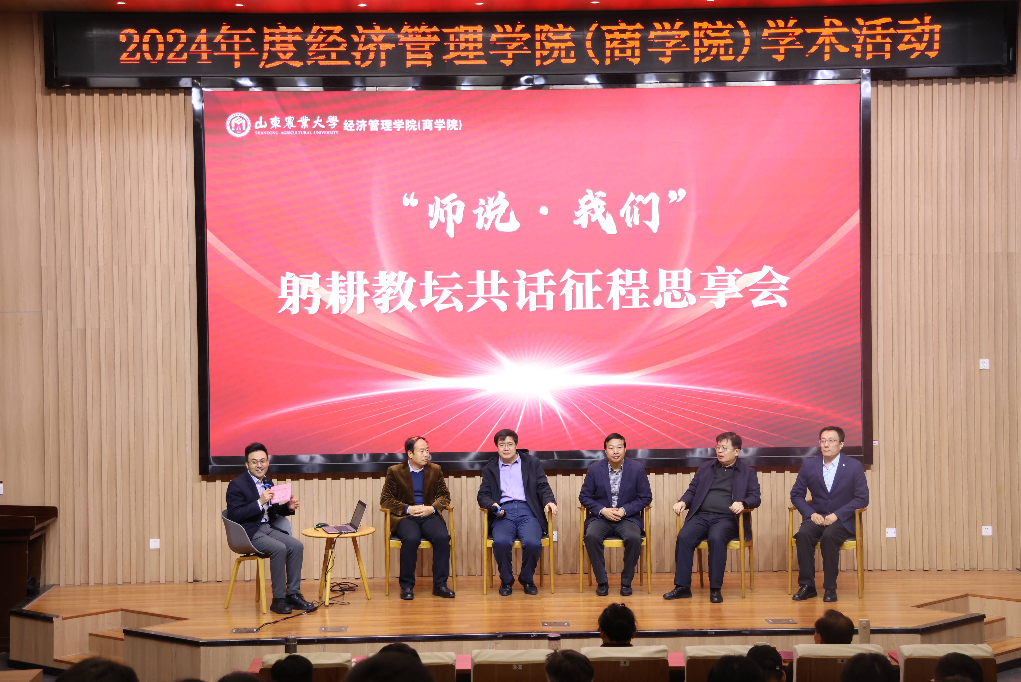 “师说我们”教育教学经验交流专题采用圆桌谈论的形式,由副院长崔丙群主持,邀请葛颜祥老师、岳书铭老师、郑军老师、袁建华老师、孙兆东老师等资深教师,围绕教学方法创新、课程设计优化、学生培养等关键问题,分享各自多年以来在教育教学一线积累的宝贵经验,全场老师都收获满满。