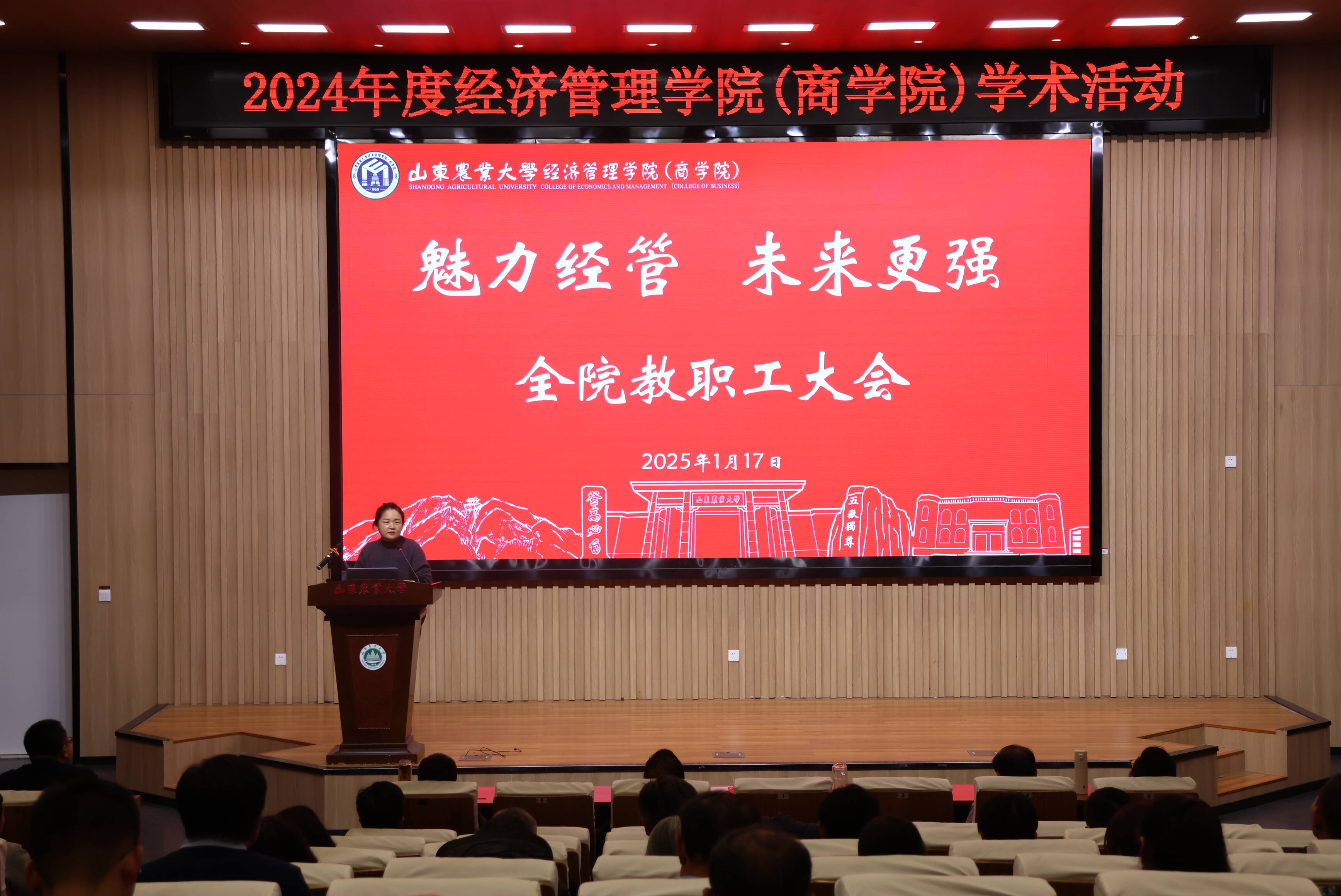 在全院教职工大会上,齐清书记发表了题为“魅力经管 未来更强”的讲话,总结2024年学院取得的成绩、谋划2025年学院工作的目标,殷切希望全院师生能够齐心协力、共创卓越经管。