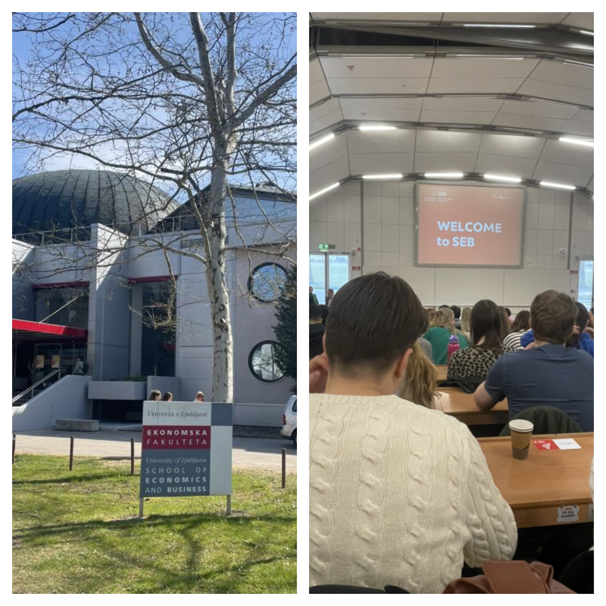 卢布尔雅那大学的课堂更注重案例讲解与师生沟通,老师会主动提问来自不同国家的学生,让大家在交流中了解各国差异。课堂氛围轻松自由:回答问题无需起立,课上可以适度开玩笑,甚至有同学会随意离开教室,这一幕起初让我十分惊讶。教室里的同学来自世界各地,见面时我们会热情问好、询问彼此的家乡,并互相添加联系方式。每当我遇到困难求助时,他们都会耐心解答;他们还饶有兴致地向我学习中文,好奇地询问中文是否有复数形式。