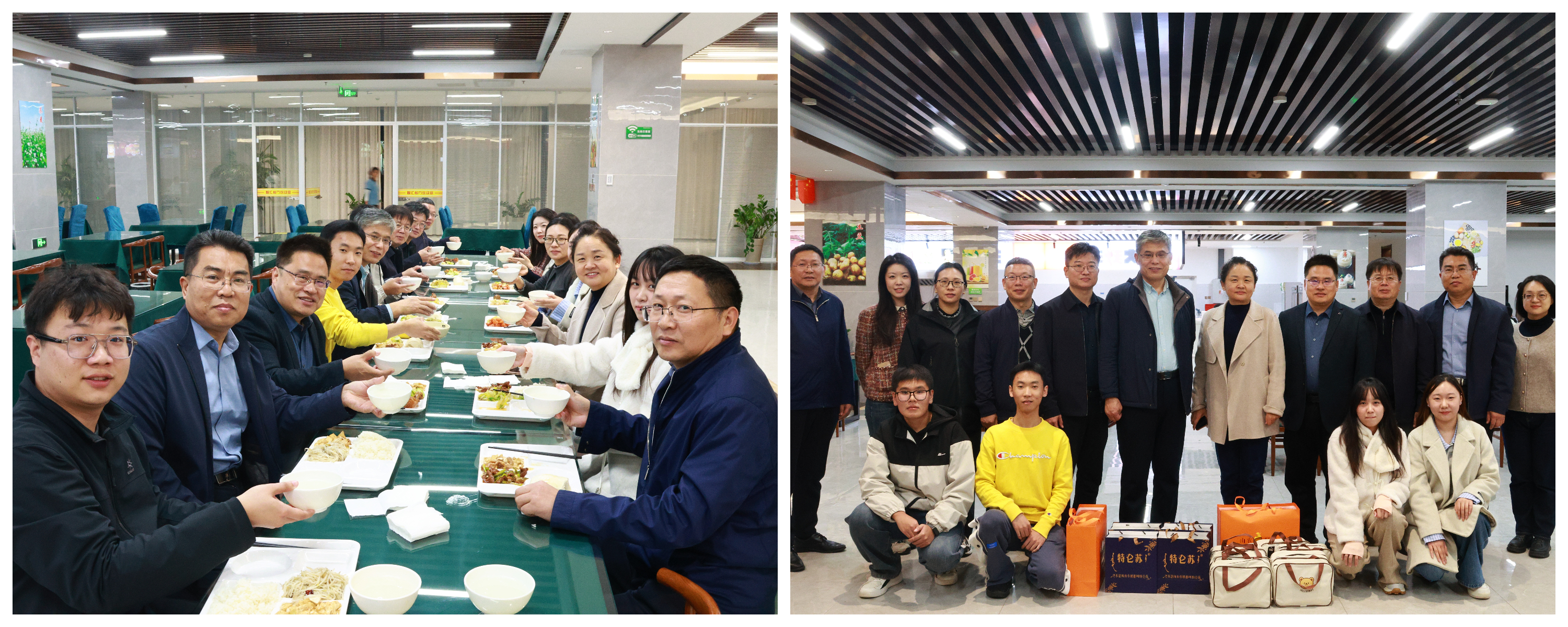 参加人员与四位入驻同学亲切交流,在学生餐厅共进晚餐。席间,师生围桌而坐,气氛温馨融洽。老师们细致询问同学们的生活起居与适应性,认真倾听了他们在盐碱地实践锻炼中的收获与感悟。